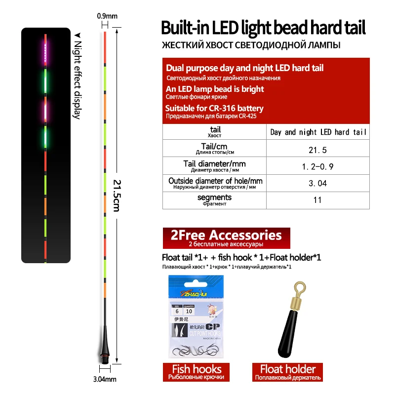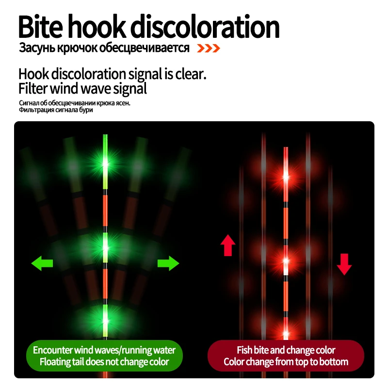 Características:2. La cola es un sensor de gravedad, que puede cambiar de color de verde a rojo cuando el pez muerde el anzuelo.