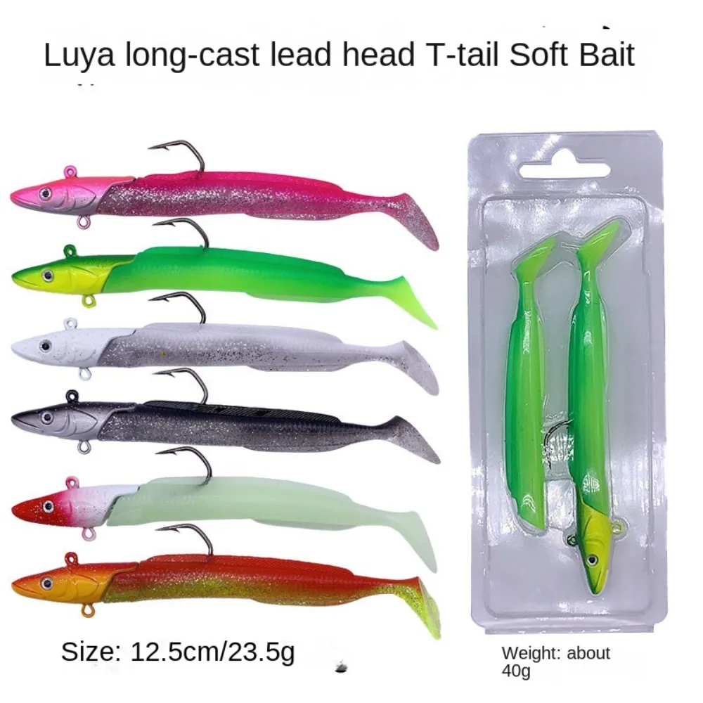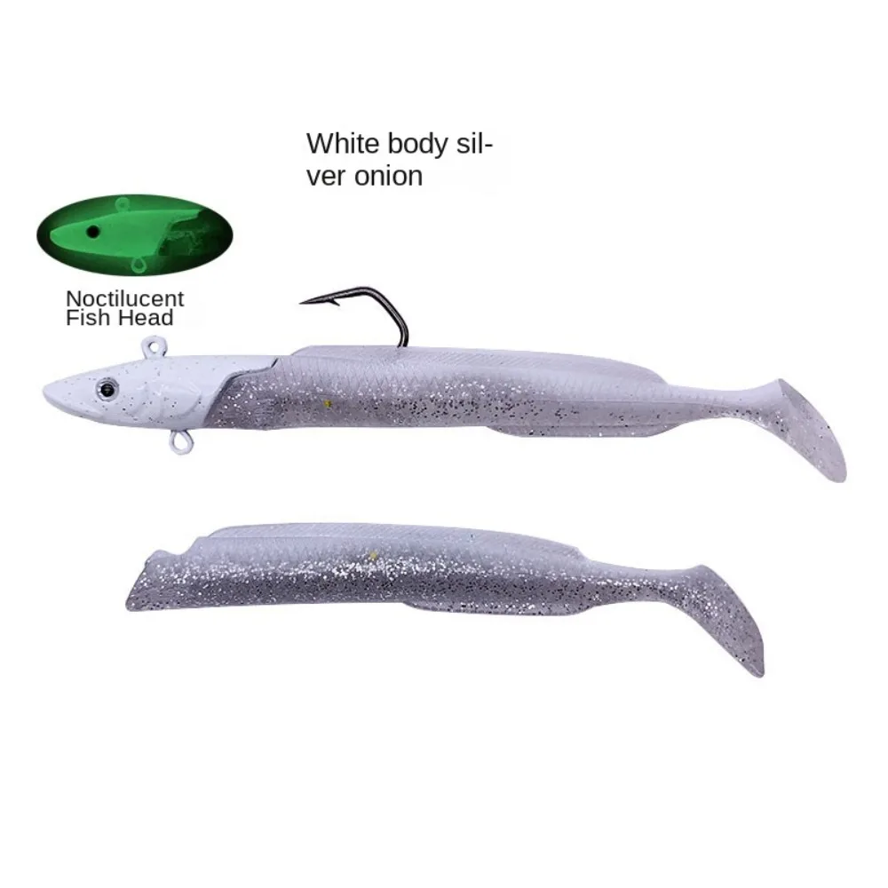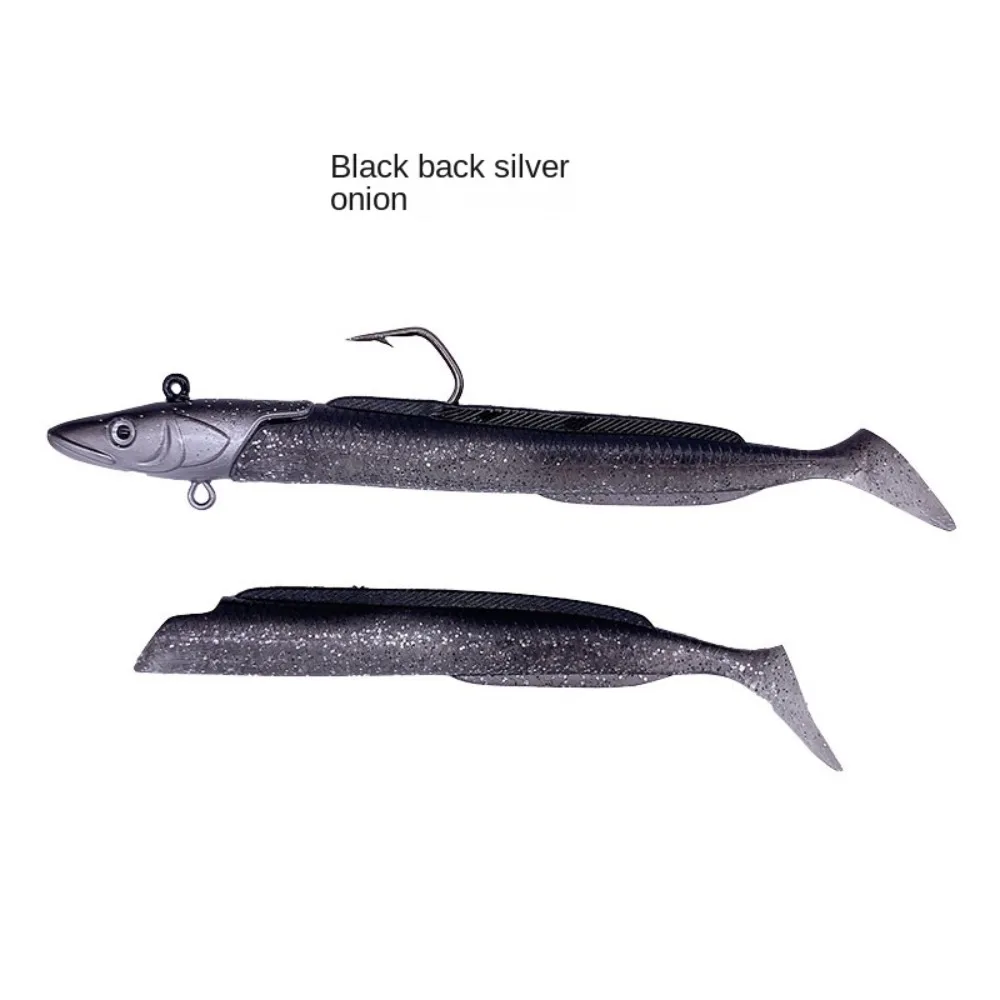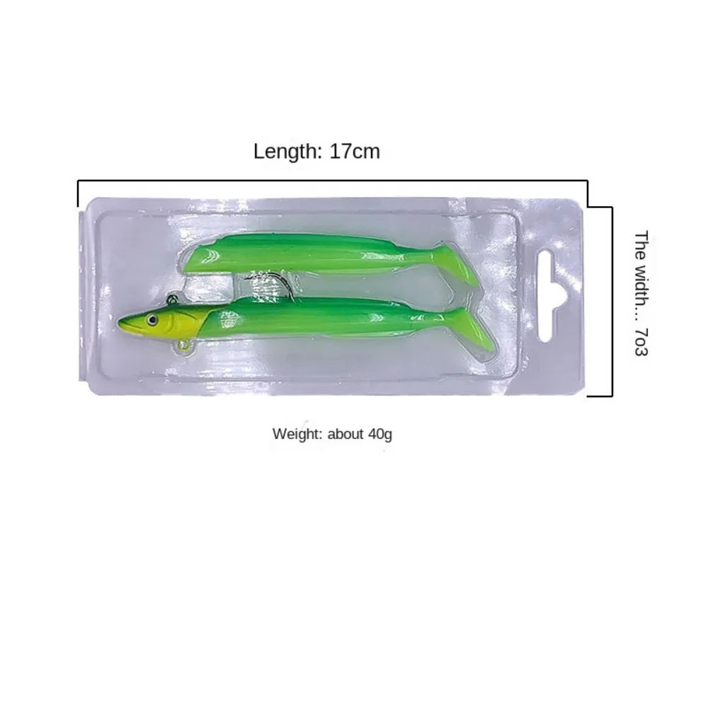 1pc lead hook+2pcs soft fish body Eel Soft Lure Wobbler Artificial Bait Silicone Sea Bass pike Rockfish Grouper Carp Fishing Lead Jig Head Tackle Name:Biomimetic Eel Lead Head Weight:23g Fish Body Length:12.5cm Material:Lead,Silica Gel ,High Carbon Steel Use Environment:seawater or Fresh Water Package Included : 1pc lead hook+2pcs soft fish body