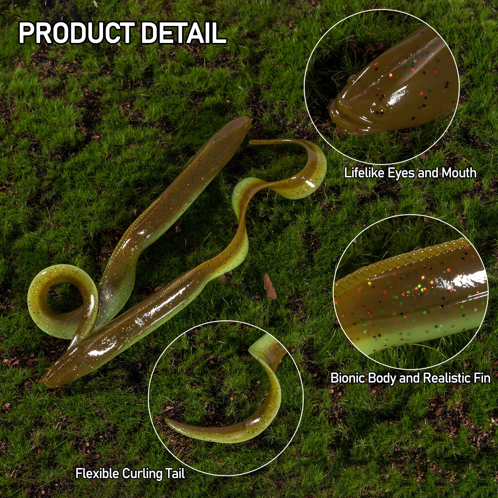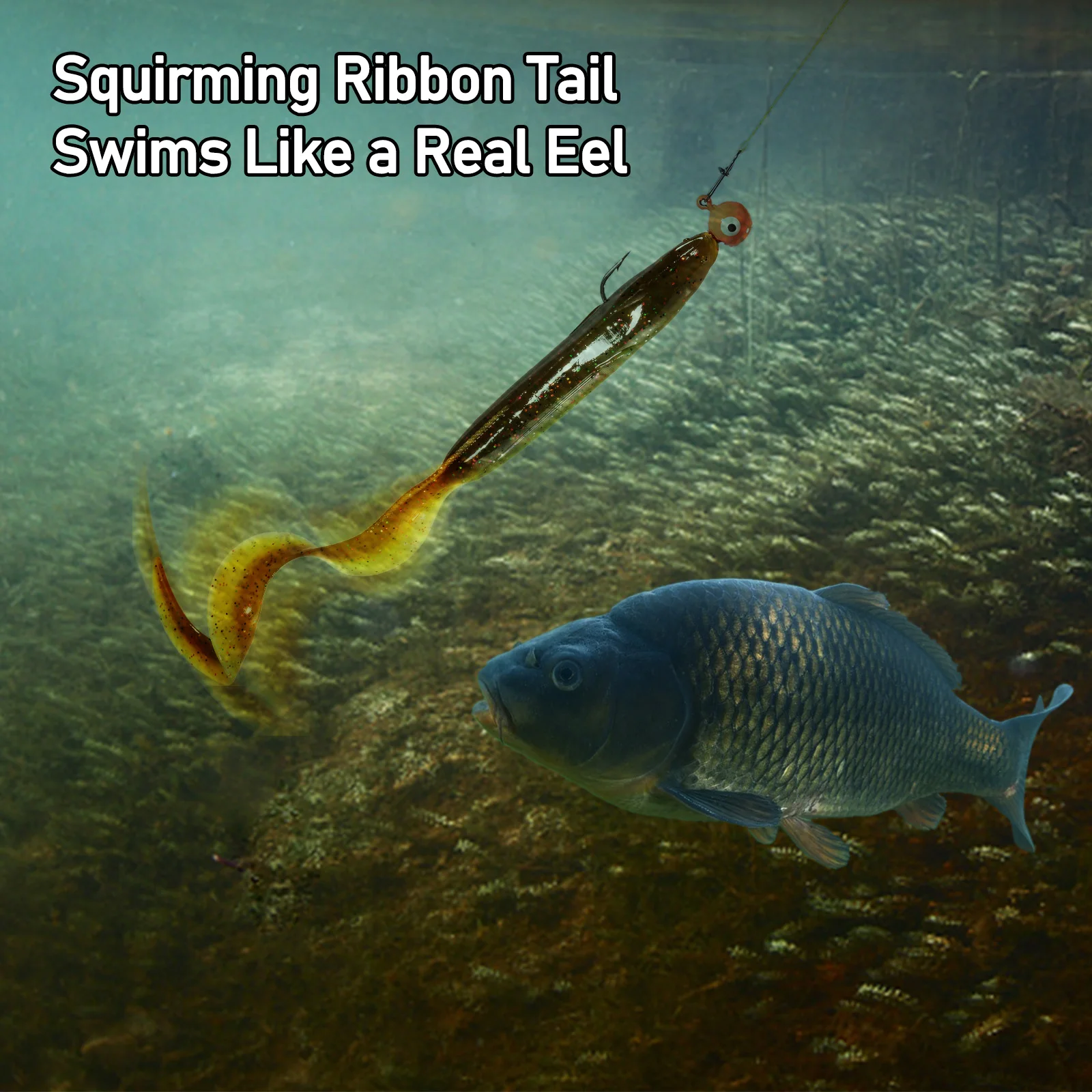 Perfil de anguila real: nuestro cebo blando tiene una apariencia casi natural, que incluye boca de pez, branquias y aletas.