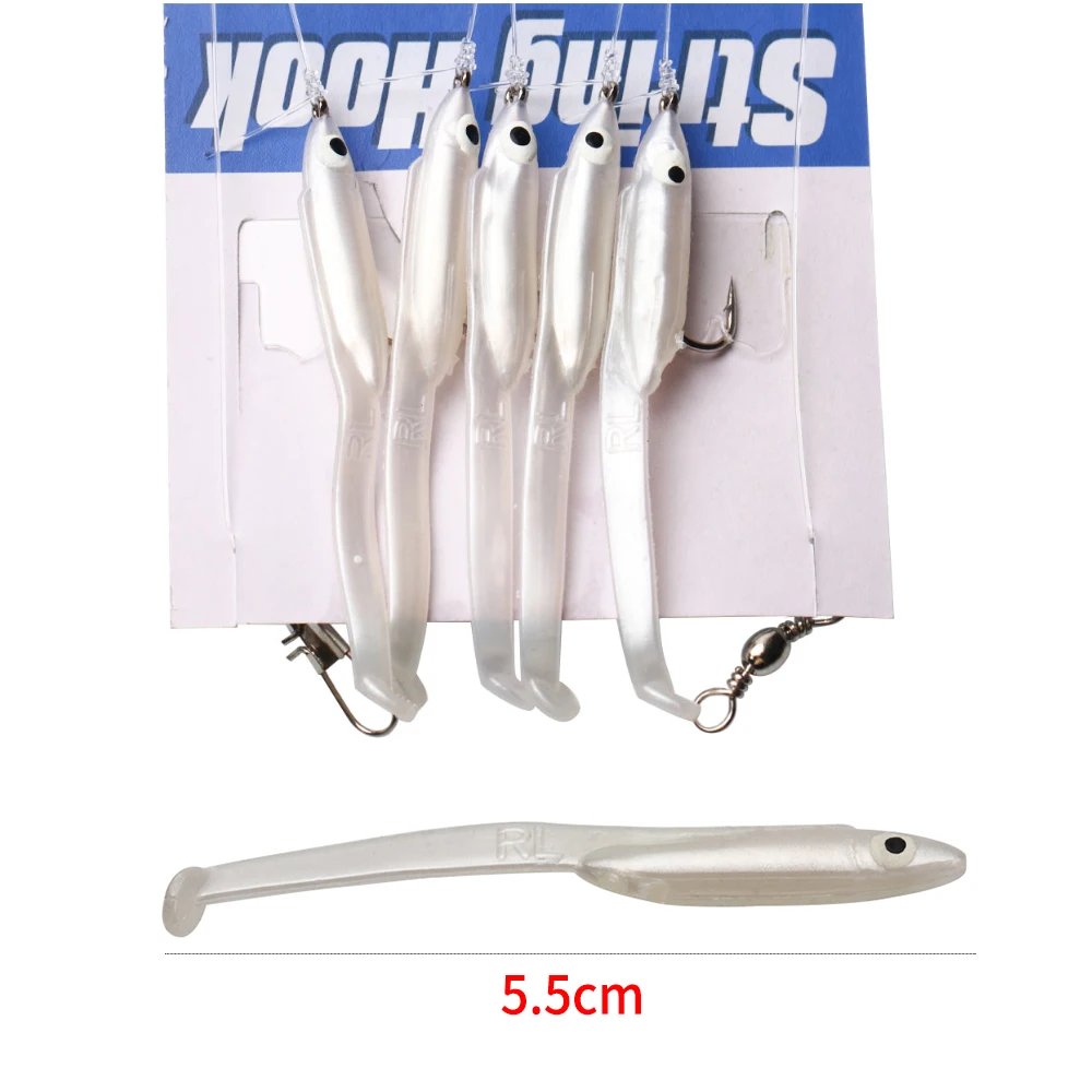 Cebo señuelo de Anguila pequeña de plástico blando para pesca de agua salada Sabiki Rig luminoso, verde, rojo, azul, negro y blanco, 50, S, M, L