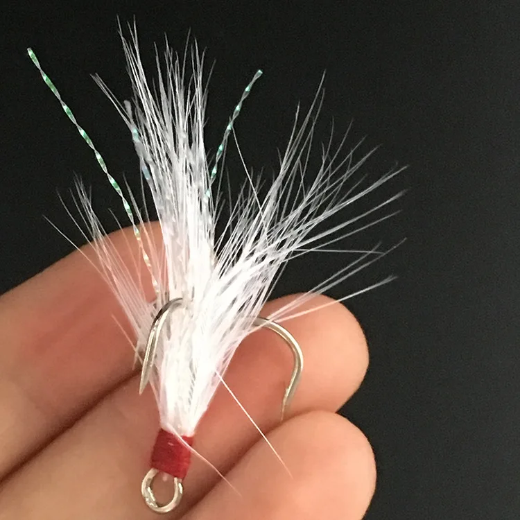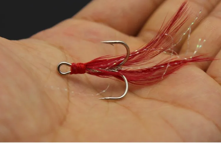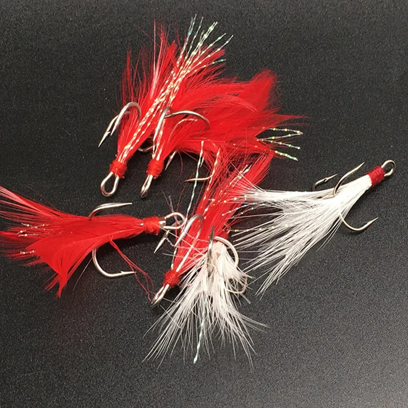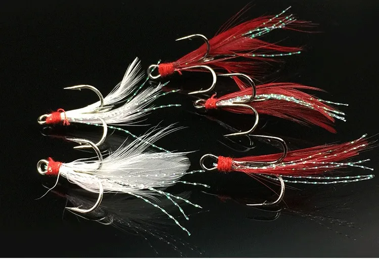 Pesca anzuelo triple señuelo rojo blanco pluma anzuelo Base redonda anzuelos tamaño 4 #6 # Lote 5 piezas