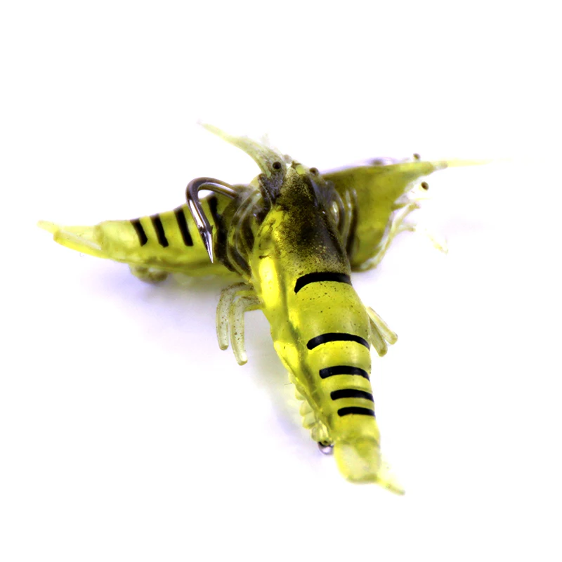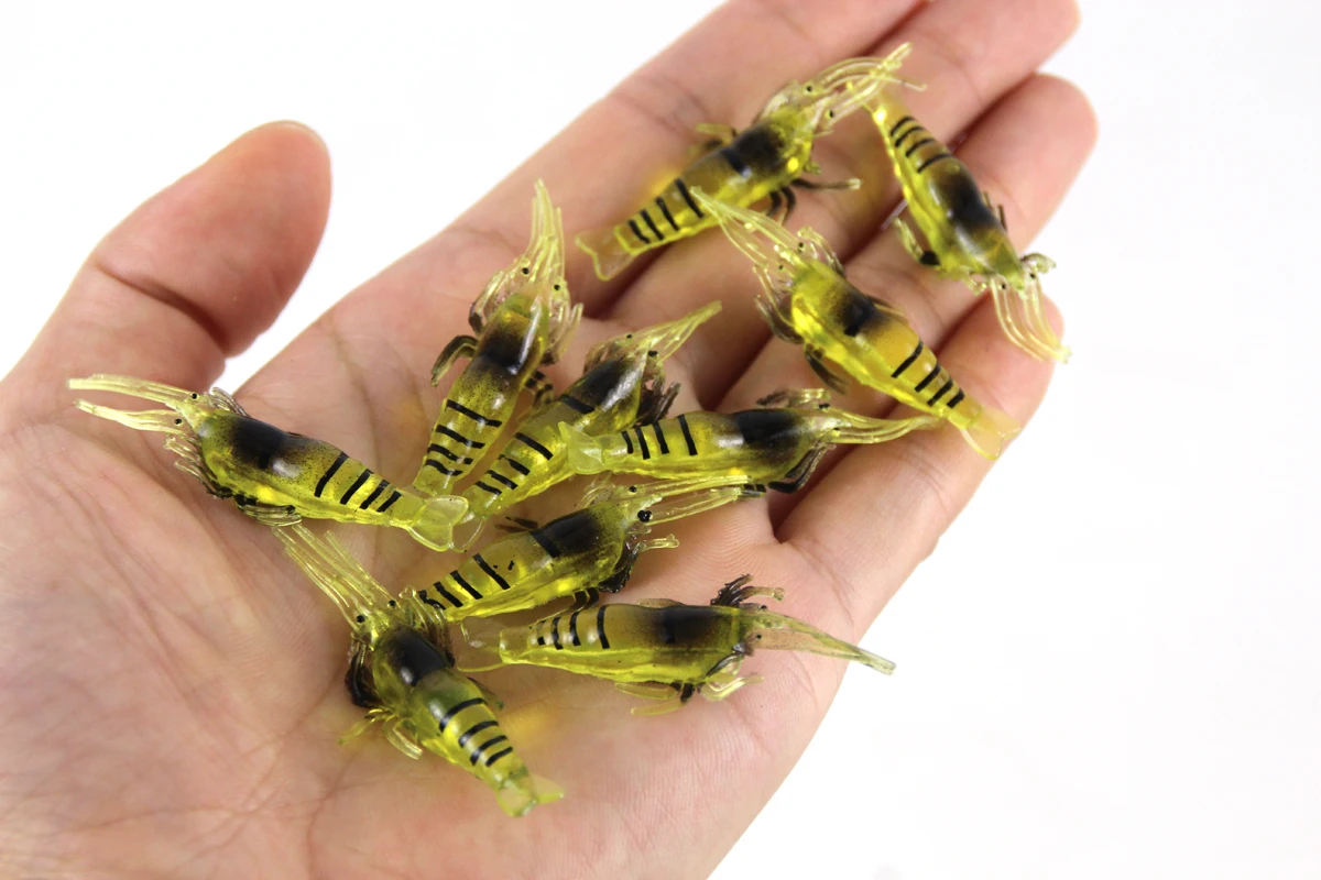 10 Uds señuelo de camarón suave Artificial gusano para cebo de Pesca con anzuelo 4cm señuelos Crankbait cebo de gambas de silicona Pesca