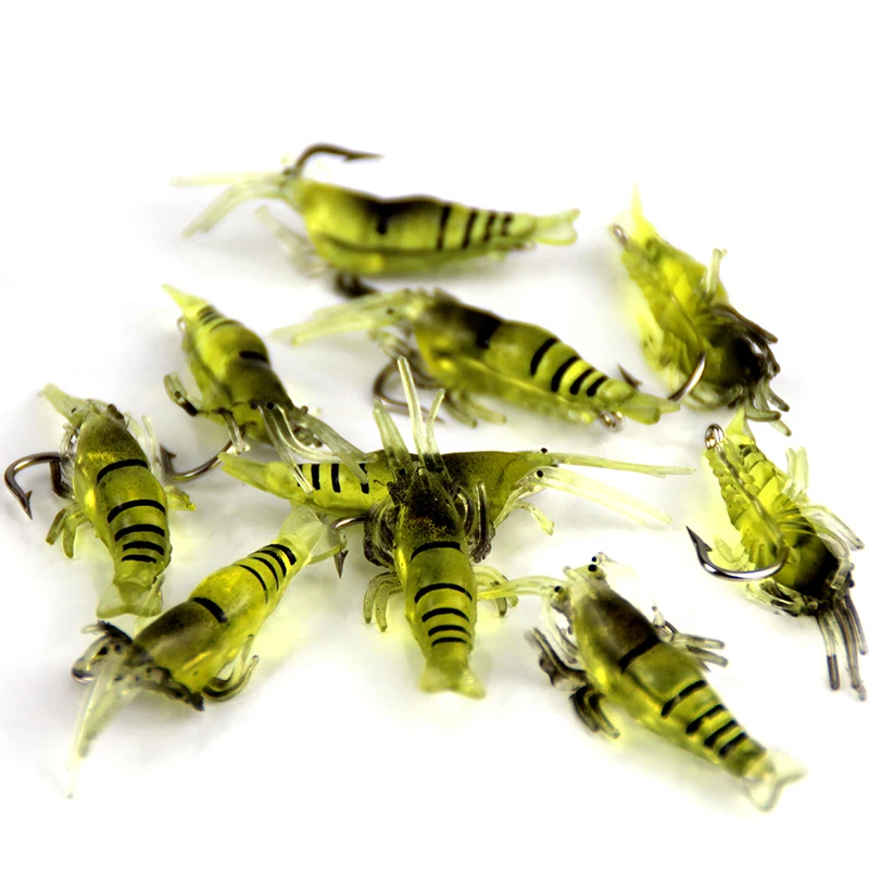 10 Uds señuelo de camarón suave Artificial gusano para cebo de Pesca con anzuelo 4cm señuelos Crankbait cebo de gambas de silicona Pesca