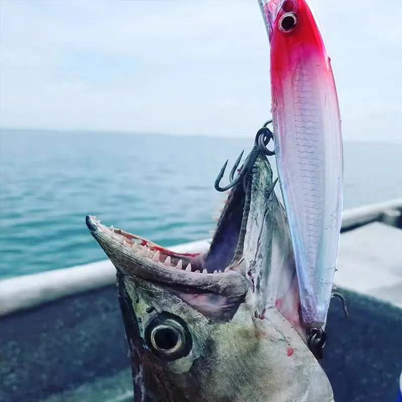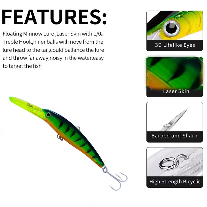 5. BIEN DISEÑADO Y BIEN HECHO-La vida en 3D como ojos de pez con cuerpo impreso láser que atrae peces proporciona una excelente apariencia de los Señuelos de Pesca. Mientras que los anillos dobles planos fuertes y los anzuelos triples de acero al carbono #10 ofrecen un destello metálico continuo y vibración especial con cebo realista para atraer a los peces. BBS interior de acero inoxidable cámara para señuelos para mantener el equilibrio y el mayor alcance.