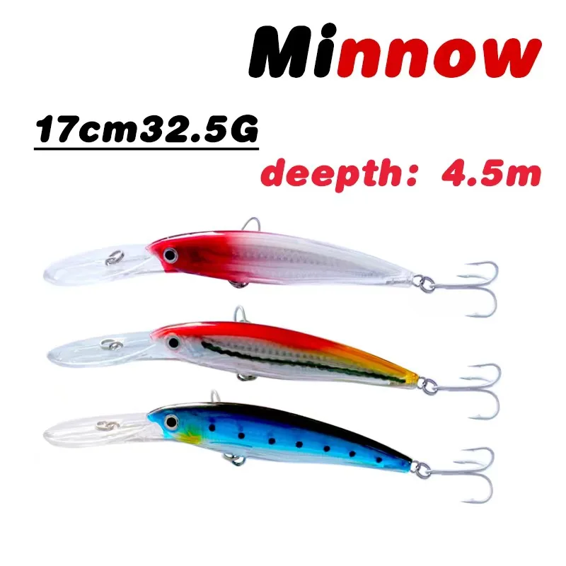 Cebo Artificial Crankbait Minnow Grande, Accesorios de Señuelos de Carpa de Lucio, Aparejos de Pesca Wobbler, Anzuelos de Plástico, 17cm, 25g, 1 piezas