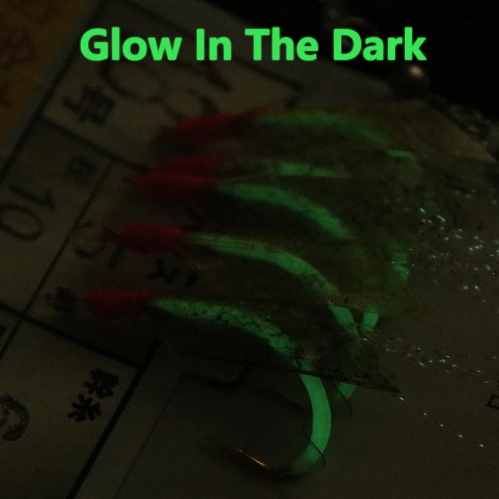 1 bolsa, 6 uds., ganchos luminosos para cuerda, cebo suave para piel de pez profundo Real, aparejos de Sabiki, señuelo Artificial de pesca en agua salada, 11 tamaños