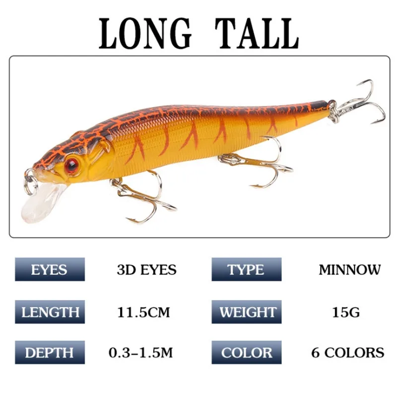 Señuelo Artificial Wobblers Minnow, anzuelo triple de calidad Isca Crankbait para trucha, Lucio, Carpa, aparejos de pesca, 11,5 cm, 15g, 1 ud.