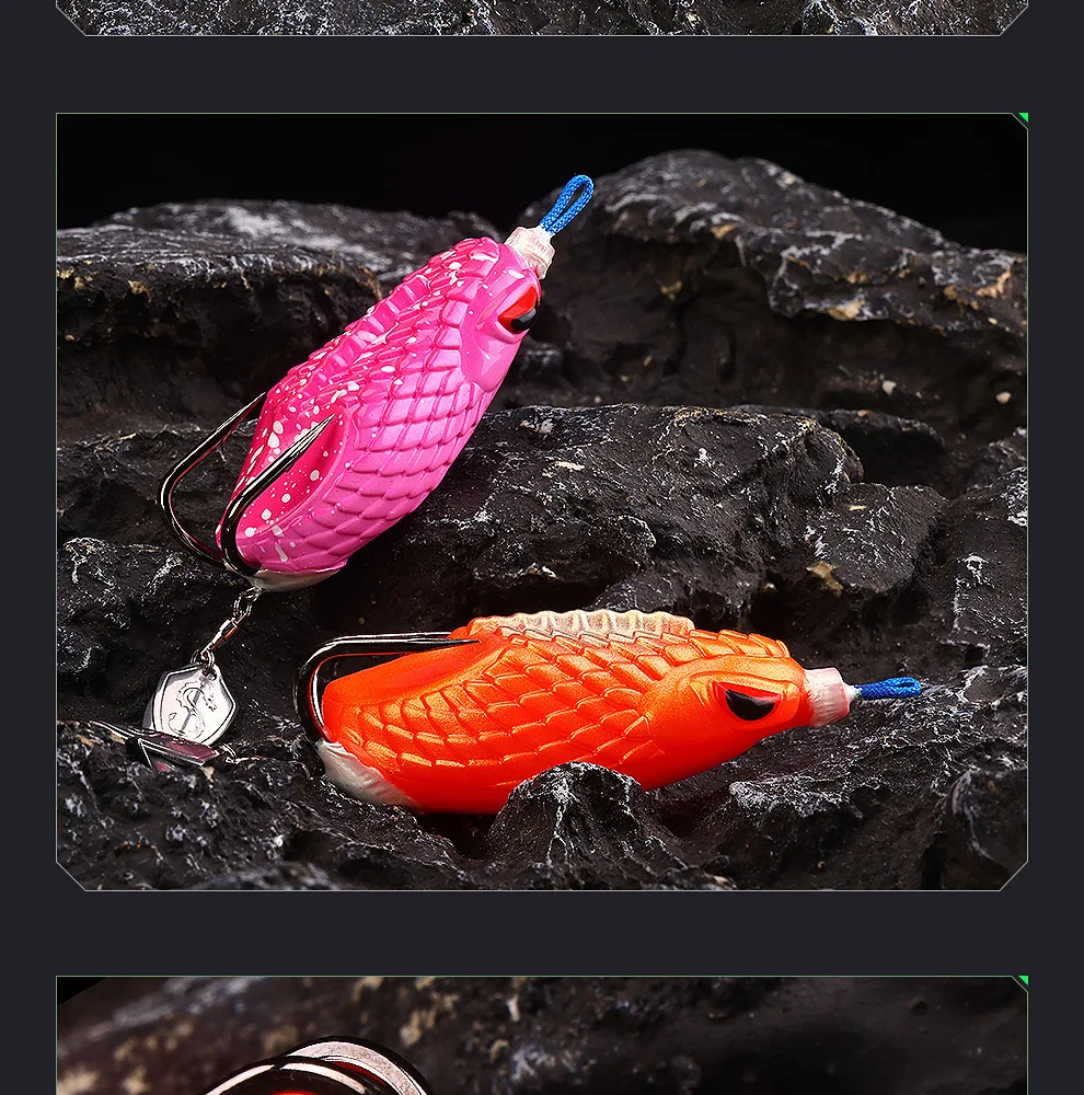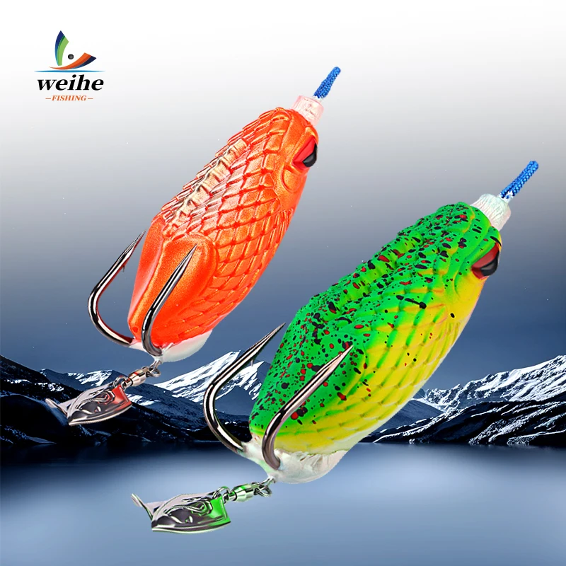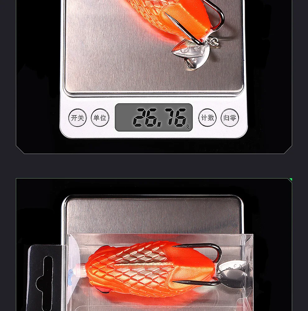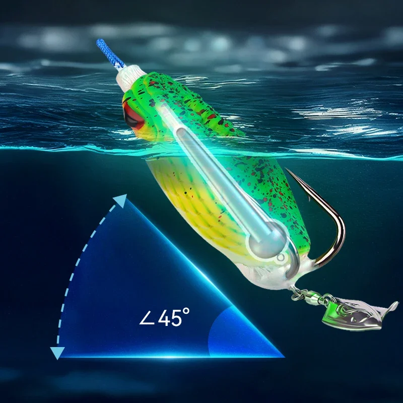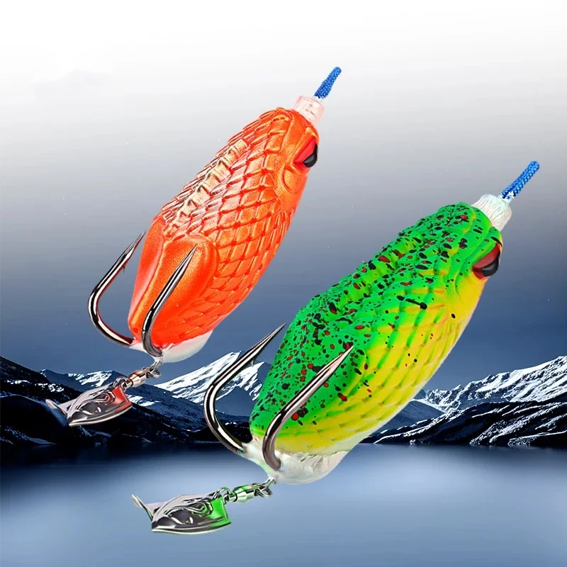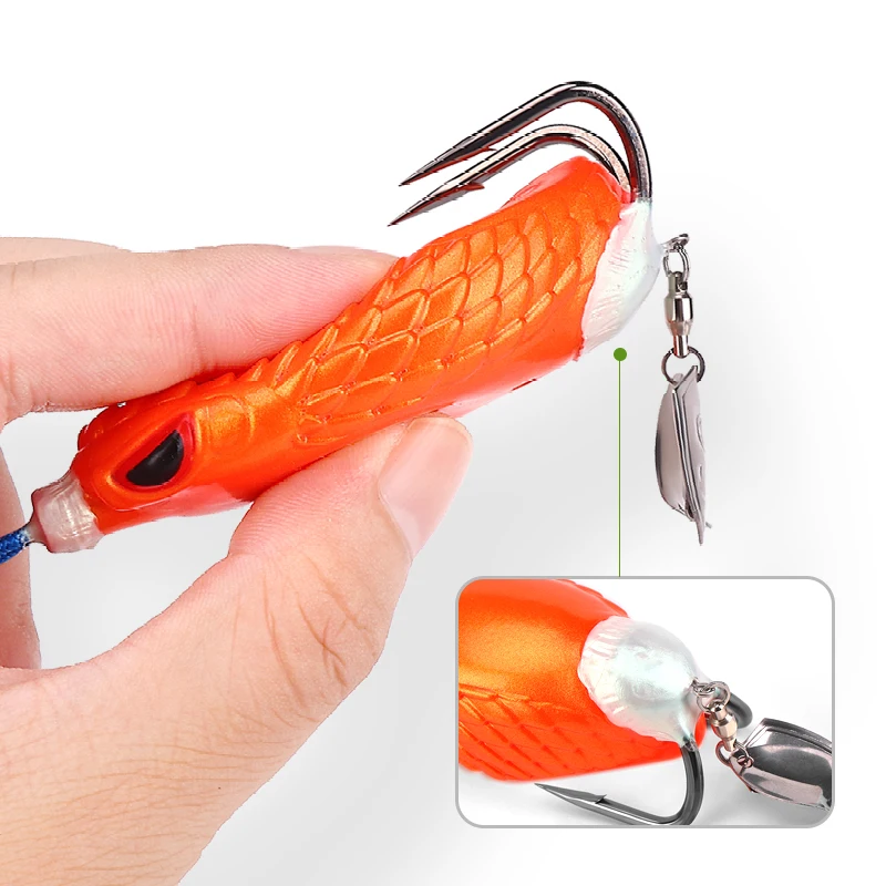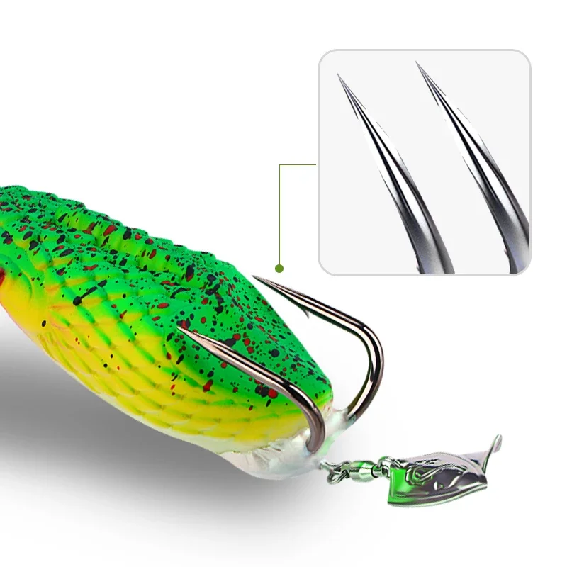 Señuelo blando de 8cm y 27g con anzuelos dobles con ranura en sangre, equipo de pesca estilo rana