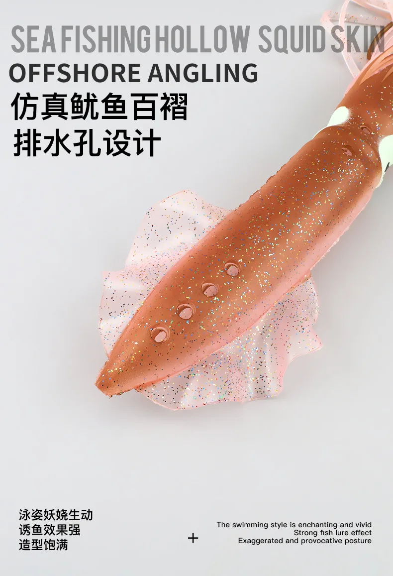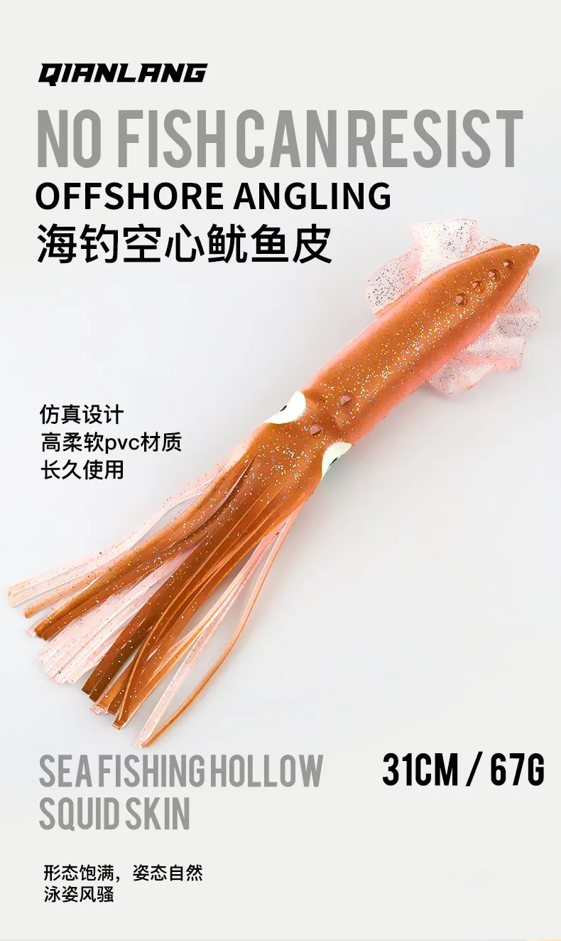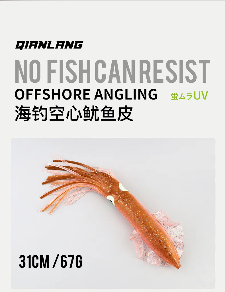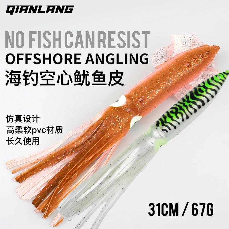 Señuelo blando de falda de calamar, cebo de pesca de aguas profundas, pulpo de goma de PVC Artificial, 31cm/67g, AS 2 piezas