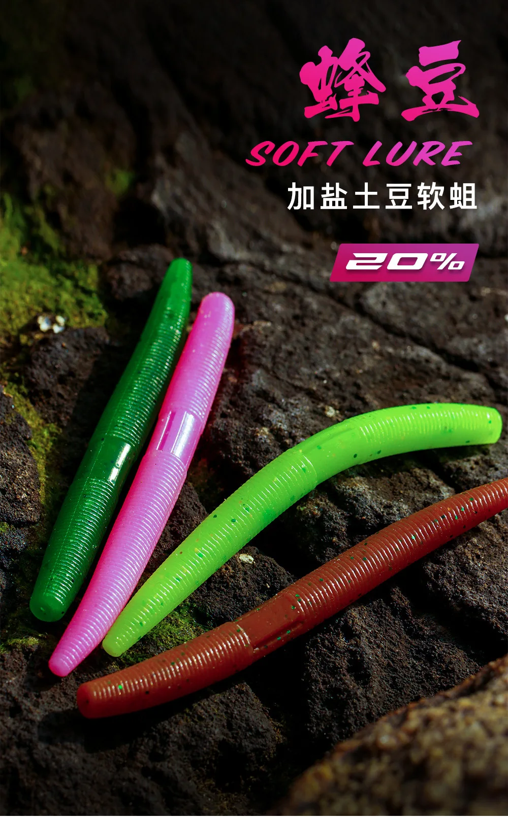 Señuelo blando de pesca, 20% agregar sal, rosca de tornillo, 10cm, 6g, simulación de captura de abeja, cabeza de serpiente, lubina, lote de 10 piezas en oferta