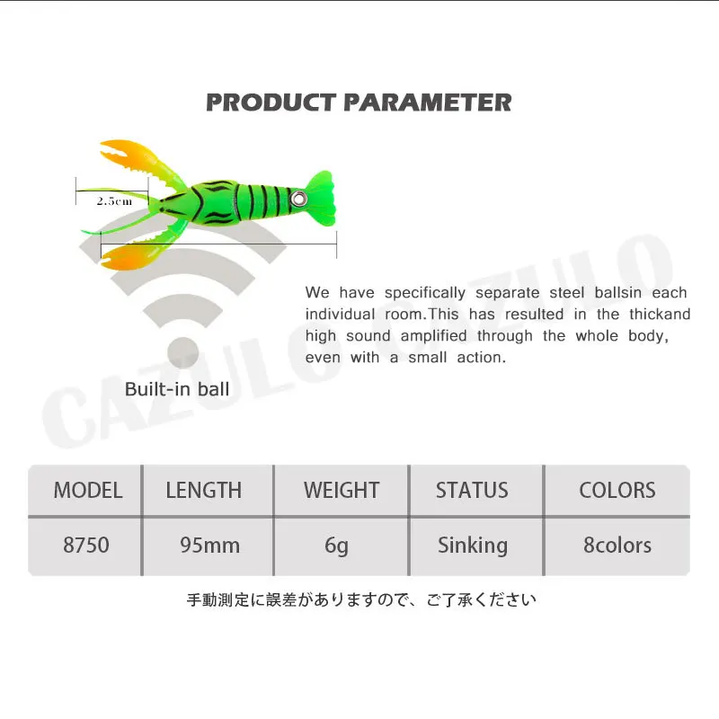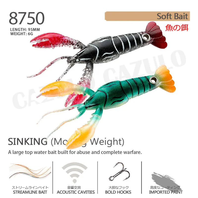 2023 cebo suave 95mm 6g señuelo de Pesca camarones langosta plástico Leurre Souple brocher Artificial Accesorios de hundimiento equipo de Pesca