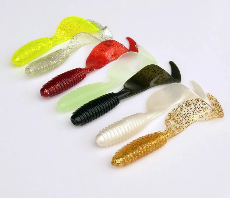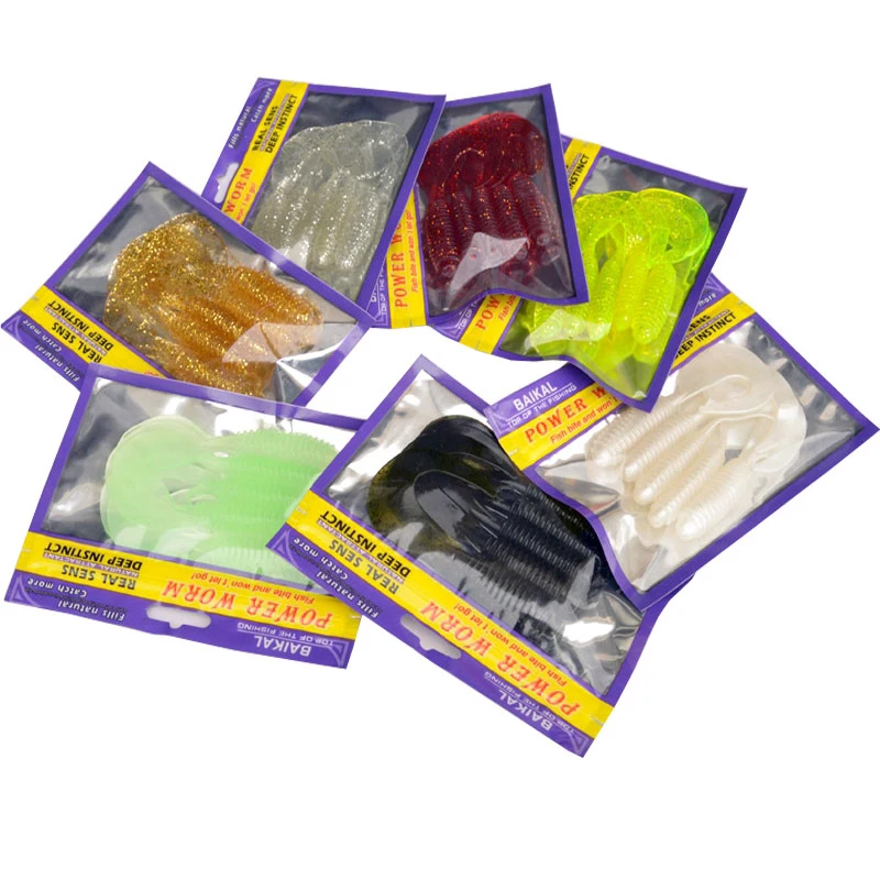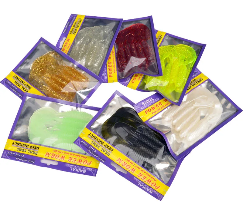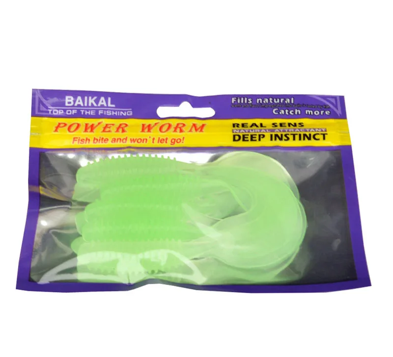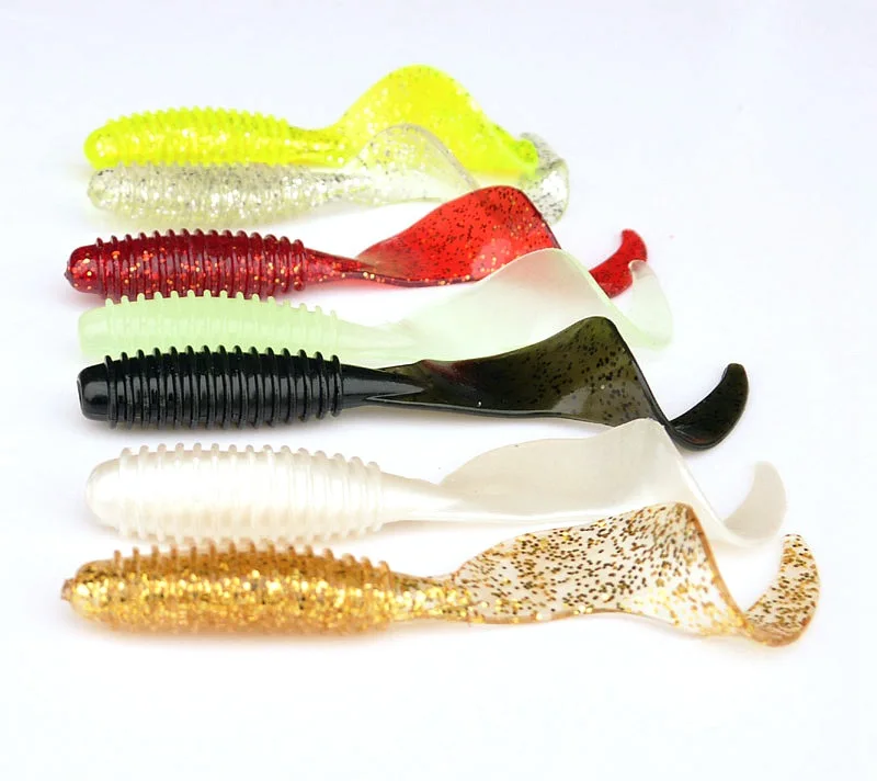 Señuelo blando de pesca, cebo de 10cm, larva de una sola cola, bolsa de 5 piezas, gusano de pez cabezona, captura de agua dulce y salada