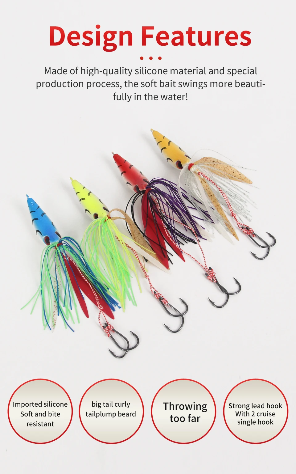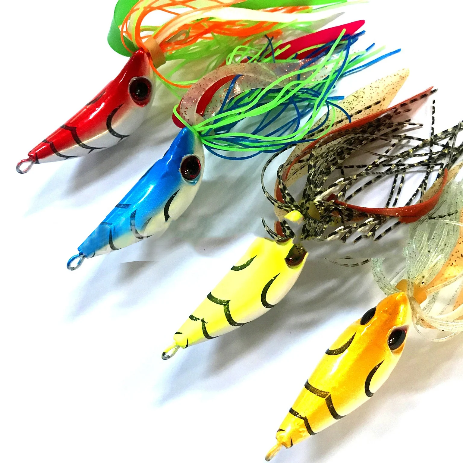 Señuelo de cabeza de plantilla lenta de Metal con faldas de silicona 60g 80g cebos de pesca de barco de mar aparejos de pesca Plantilla de goma pargo señuelo de mero