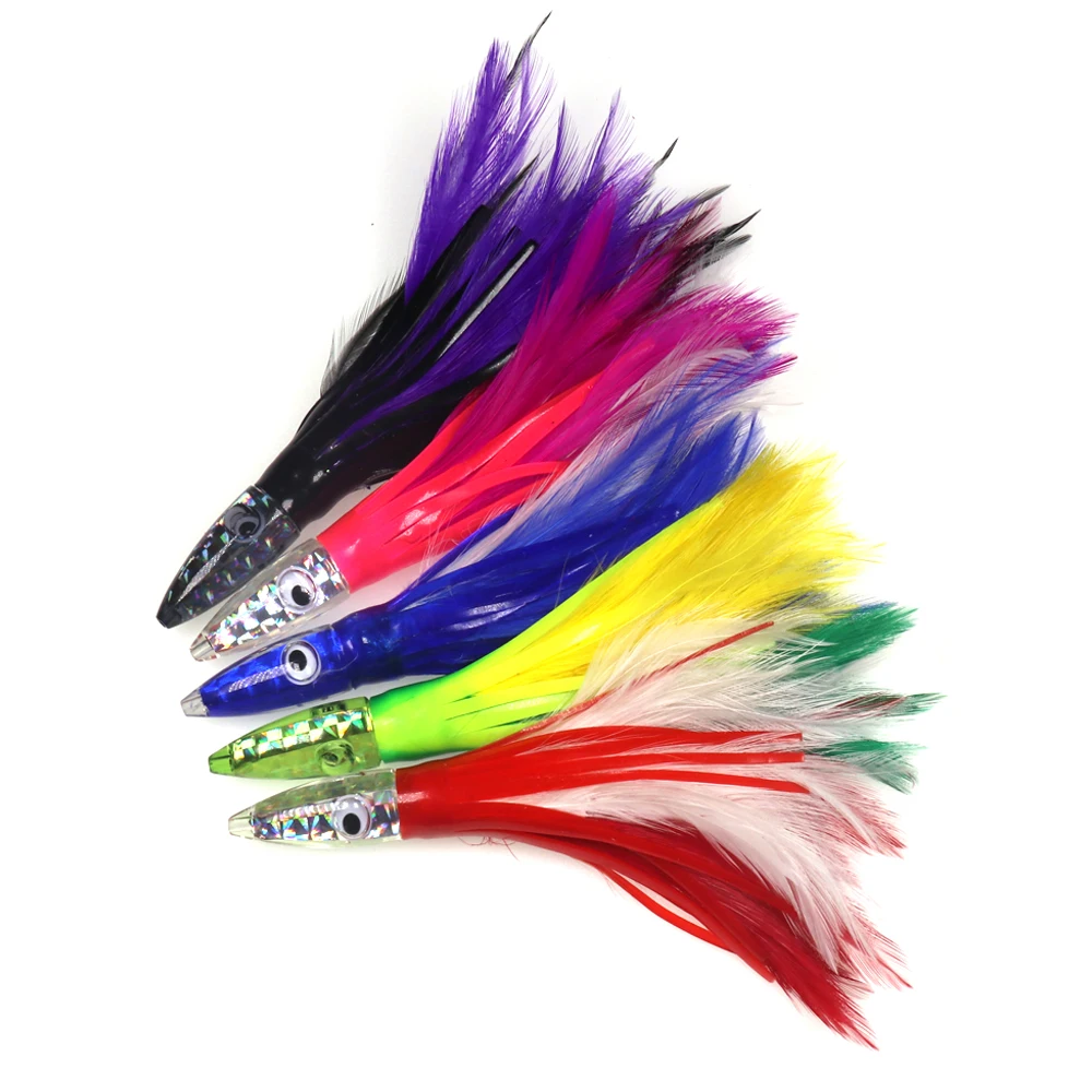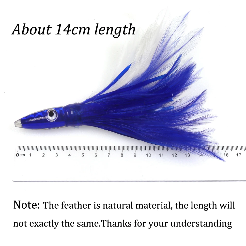 14cm/30g cabeza de resina acrílica falda de pluma de pulpo señuelo pesando pesca marina cebo de pesca de caña grande para pesca de atún Wahoo 5 colores