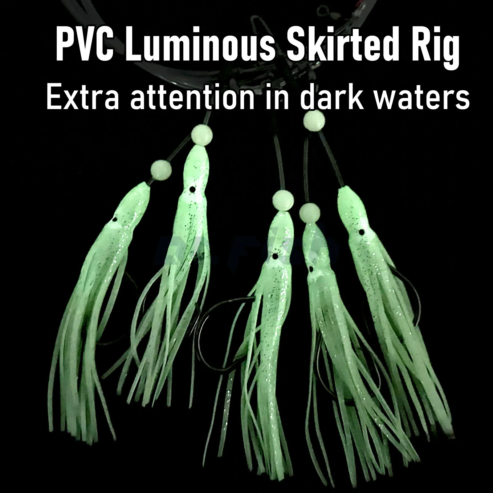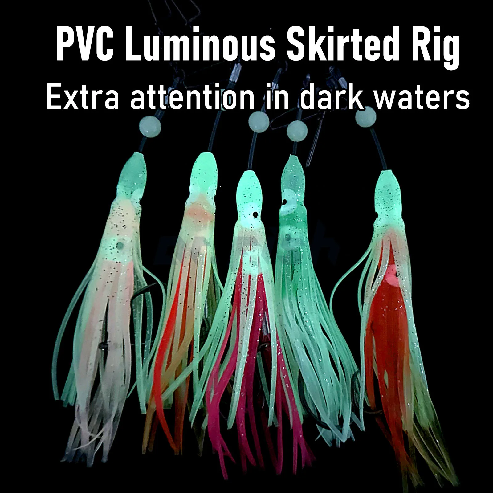 2. Con su diseño de doble falda y su acción atractiva, este aparejo está diseñado para eliminar malas hierbas y reducir las incrustaciones, asegurando una experiencia de pesca fluida e ininterrumpida. La Función de falda brillante también atrae atención adicional en aguas oscuras, por lo que es adecuado para una variedad de condiciones de pesca.