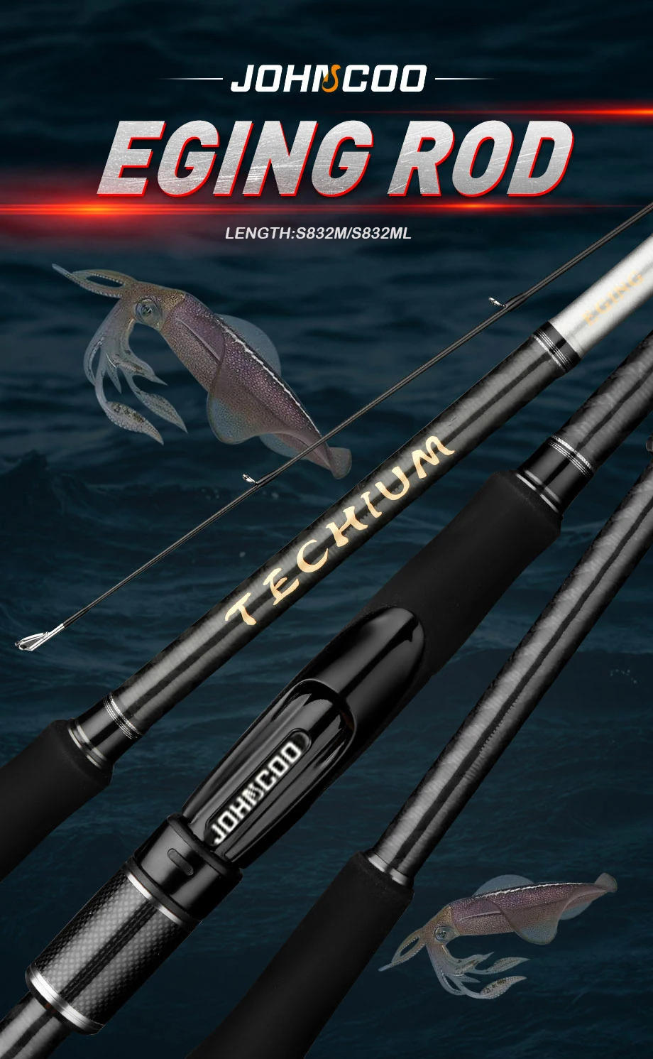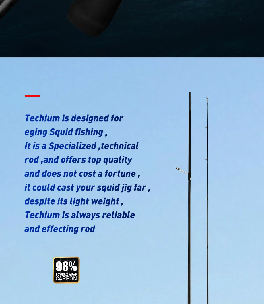 Techium está diseñado para la pesca del calamar eging, es una caña especializada, técnica, y ofrece una calidad superior y no cuesta una fortuna,