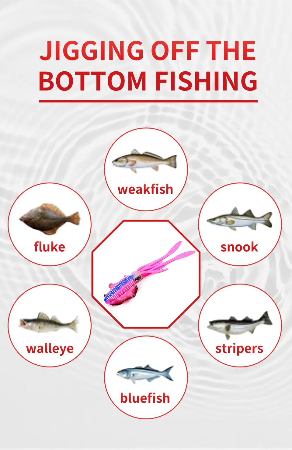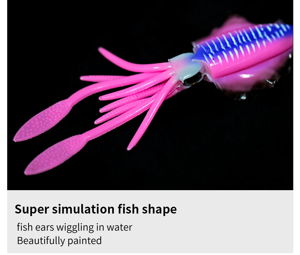 1. Diseñado para ser un cebo de pesca de imitación de calamar ultra realista.