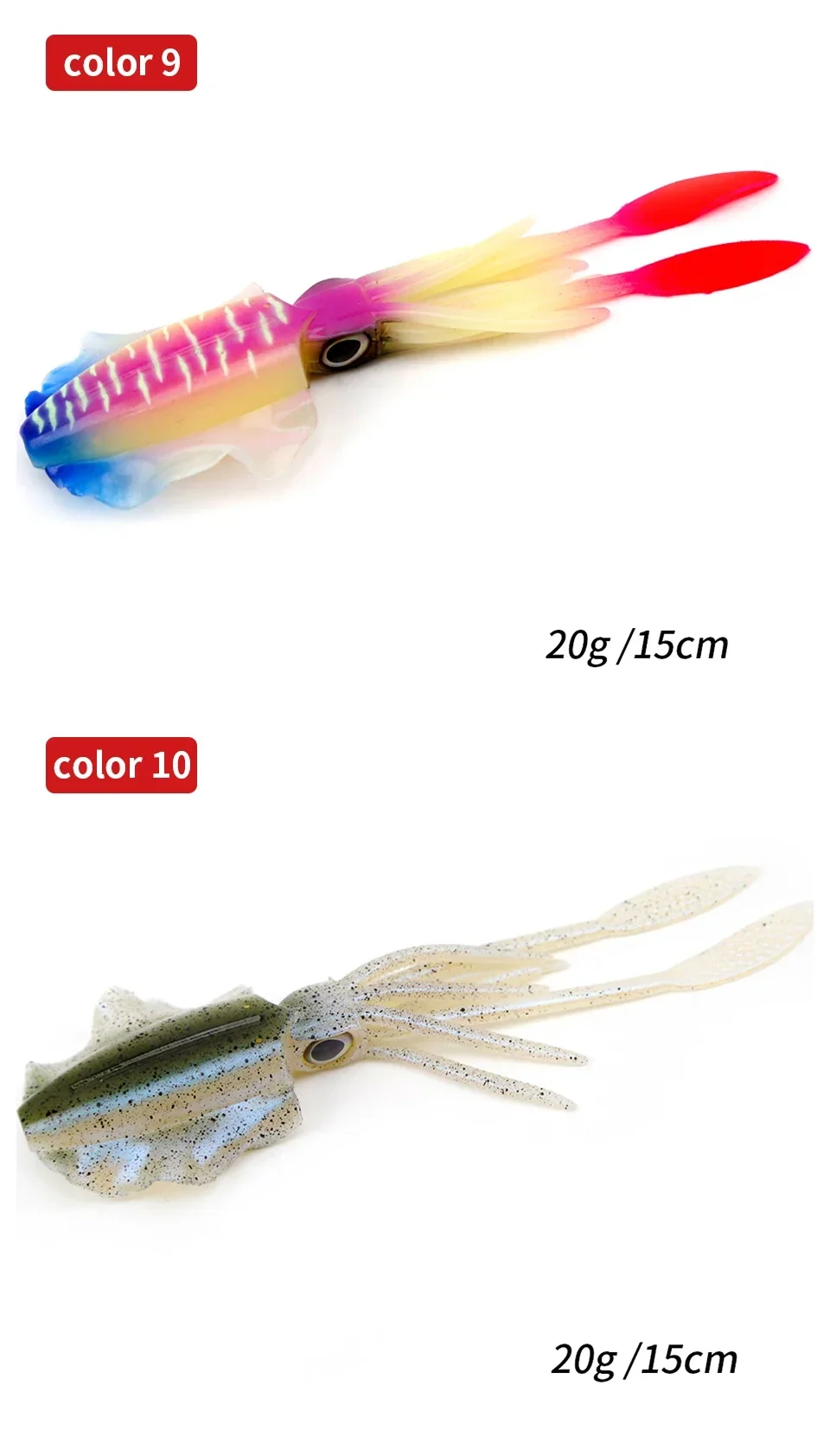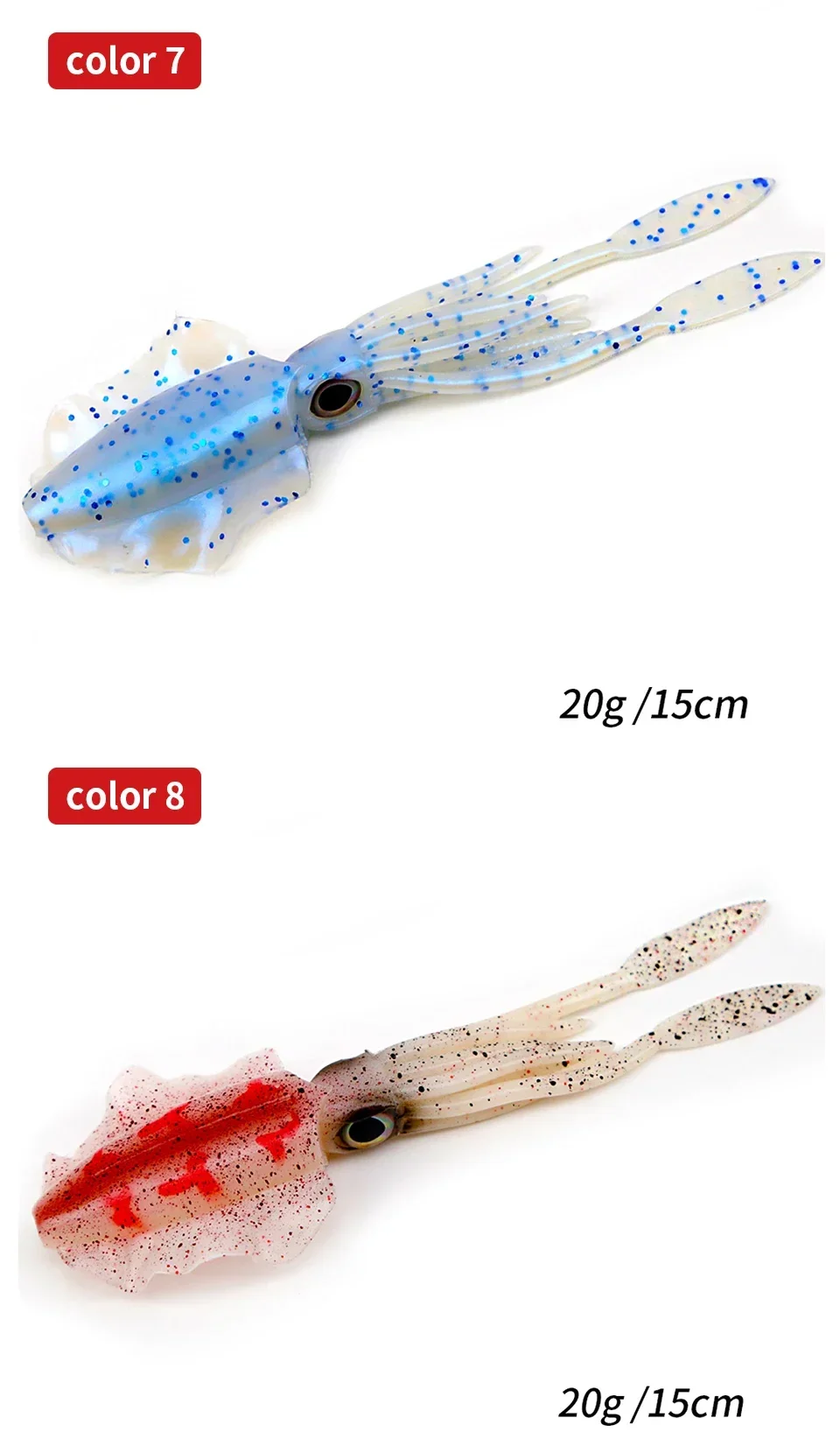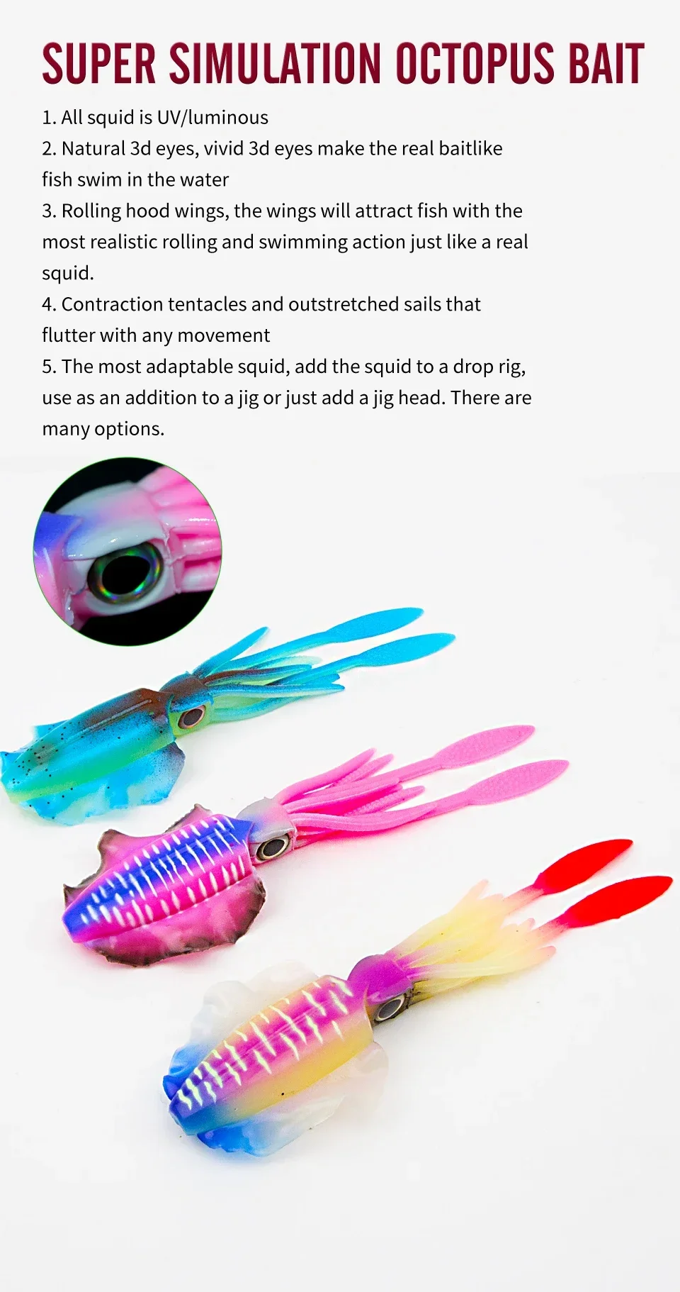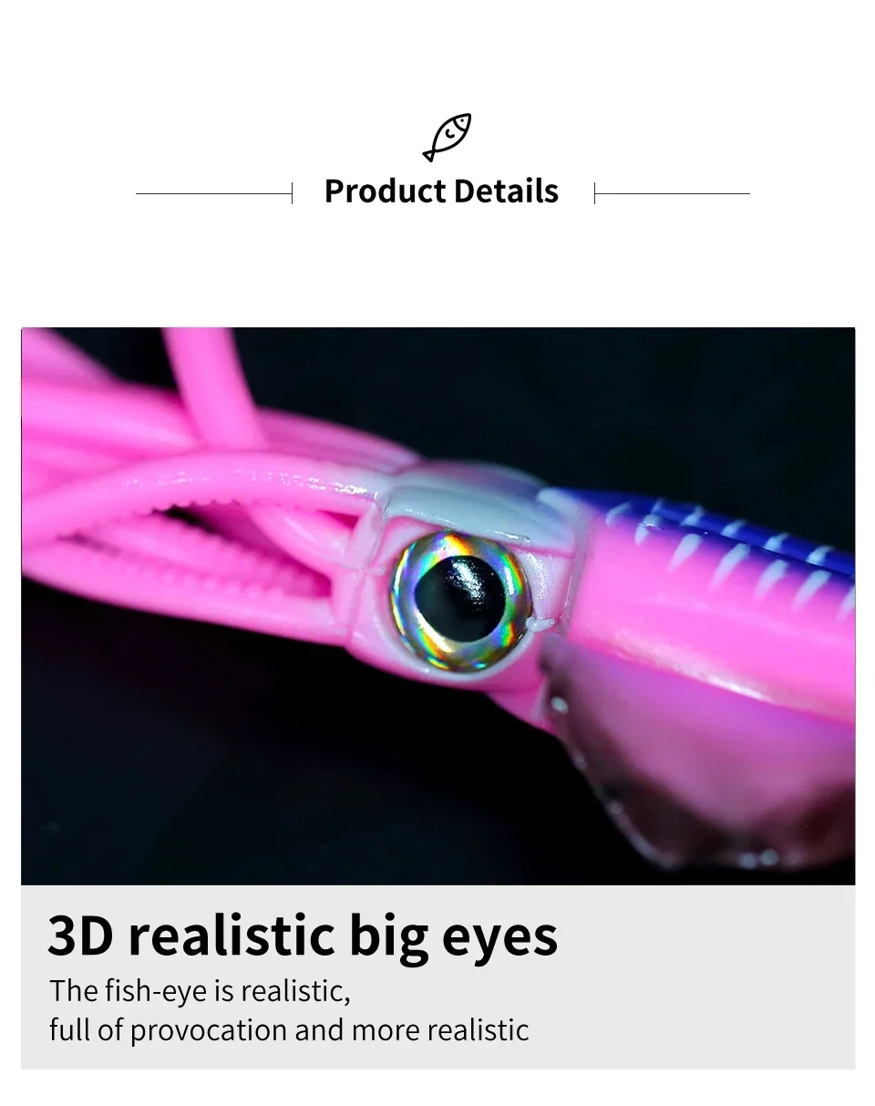 1. Diseñado para ser un cebo de pesca de imitación de calamar ultra realista.