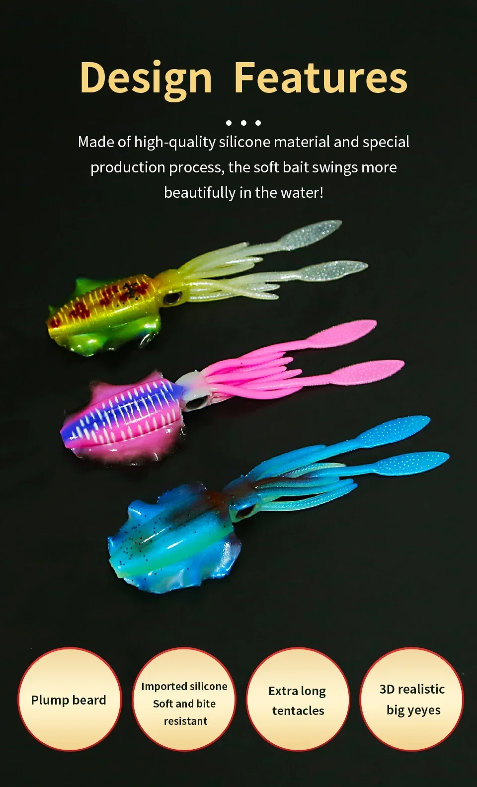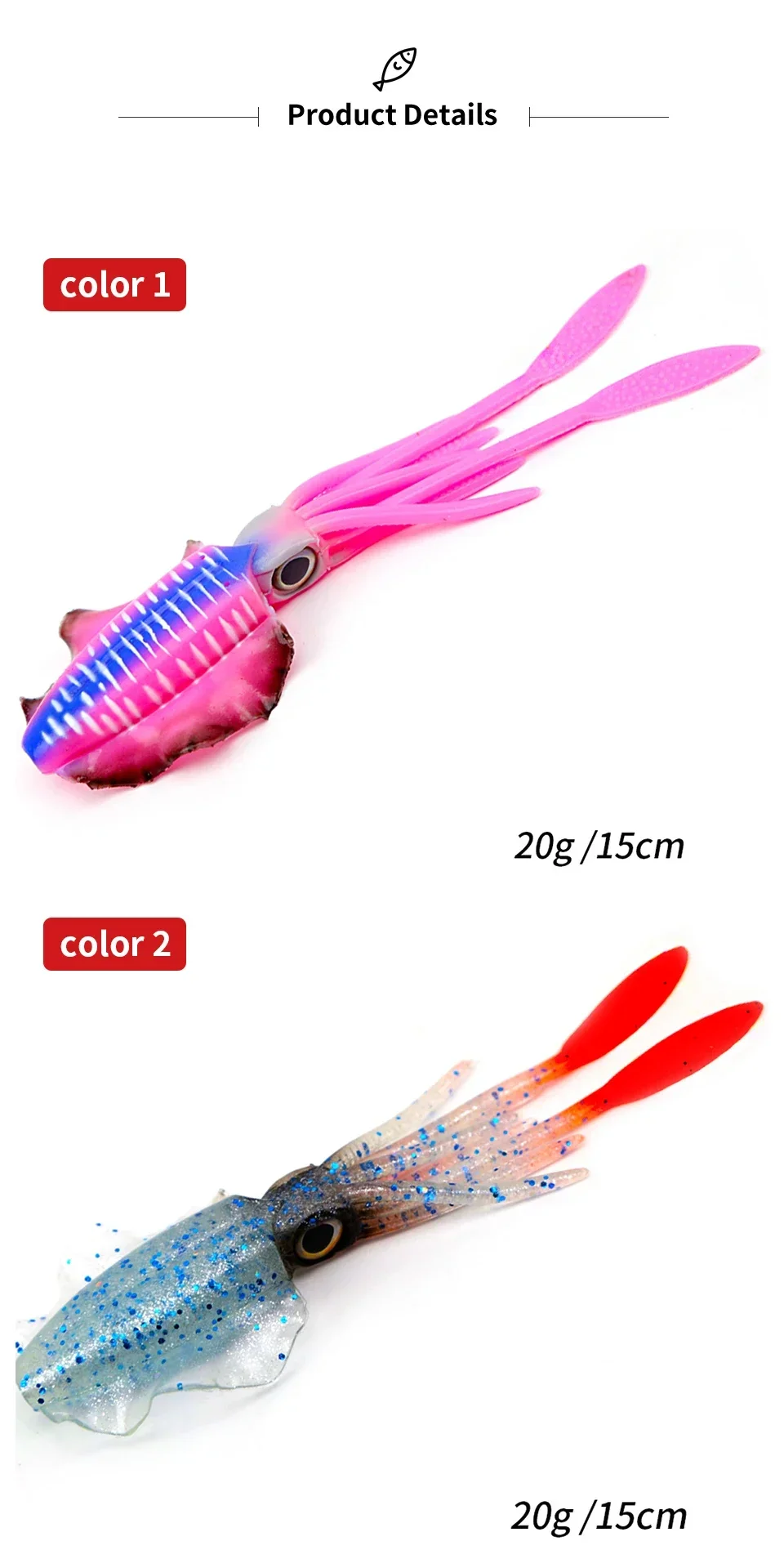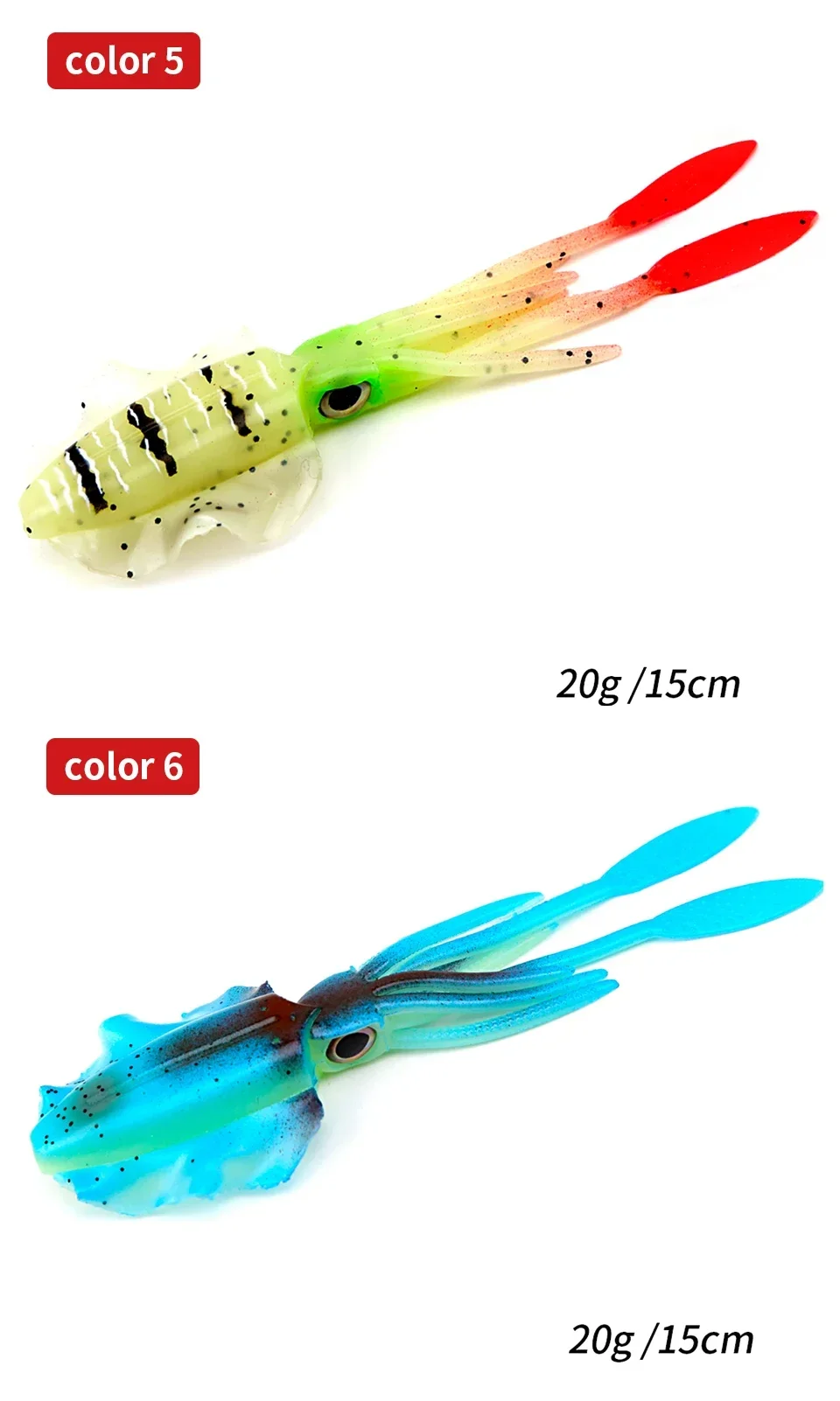 1. Diseñado para ser un cebo de pesca de imitación de calamar ultra realista.