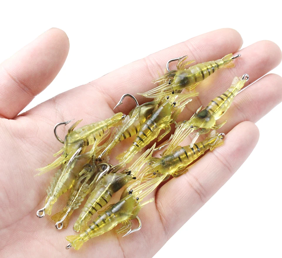Señuelo de camarón de agua salada/dulce con gancho, suave señuelo Artificial de pesca, Mini cebo de pesca de carpa X034, 4cm, 1,3g, 30 piezas