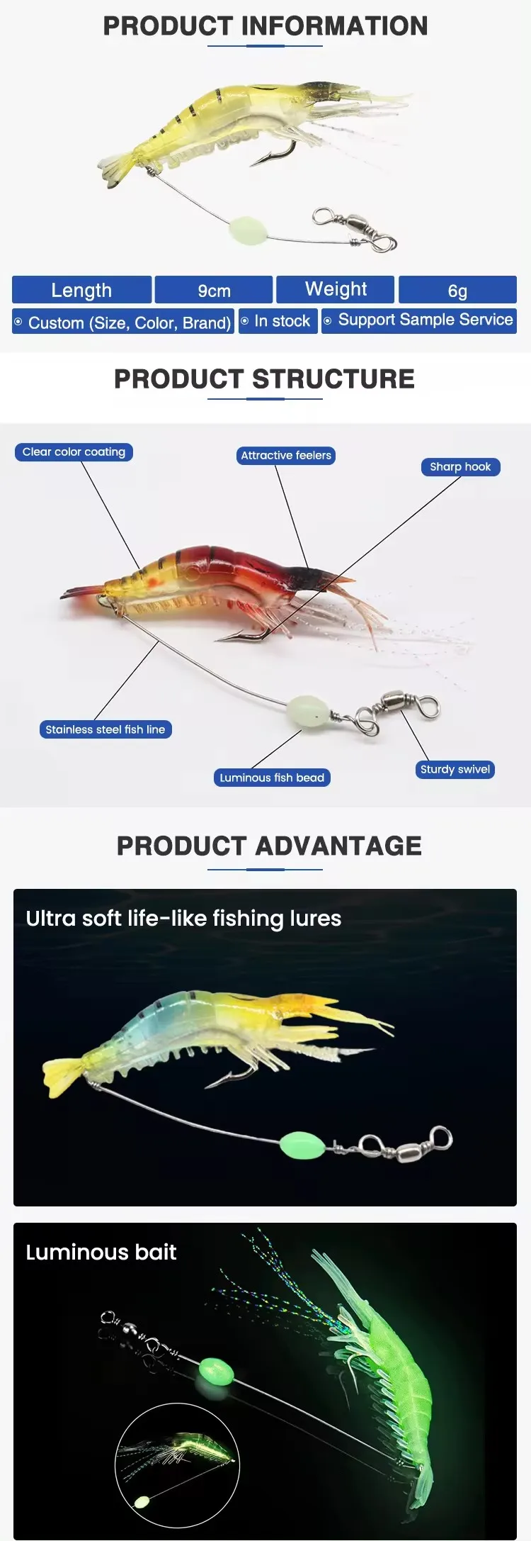 Señuelo cebo falso Camarón con gancho Camarón 9cm/6g cebo Bionic cebo simulación suave cebo suave Camarón resplandor-en-noche Blackfish