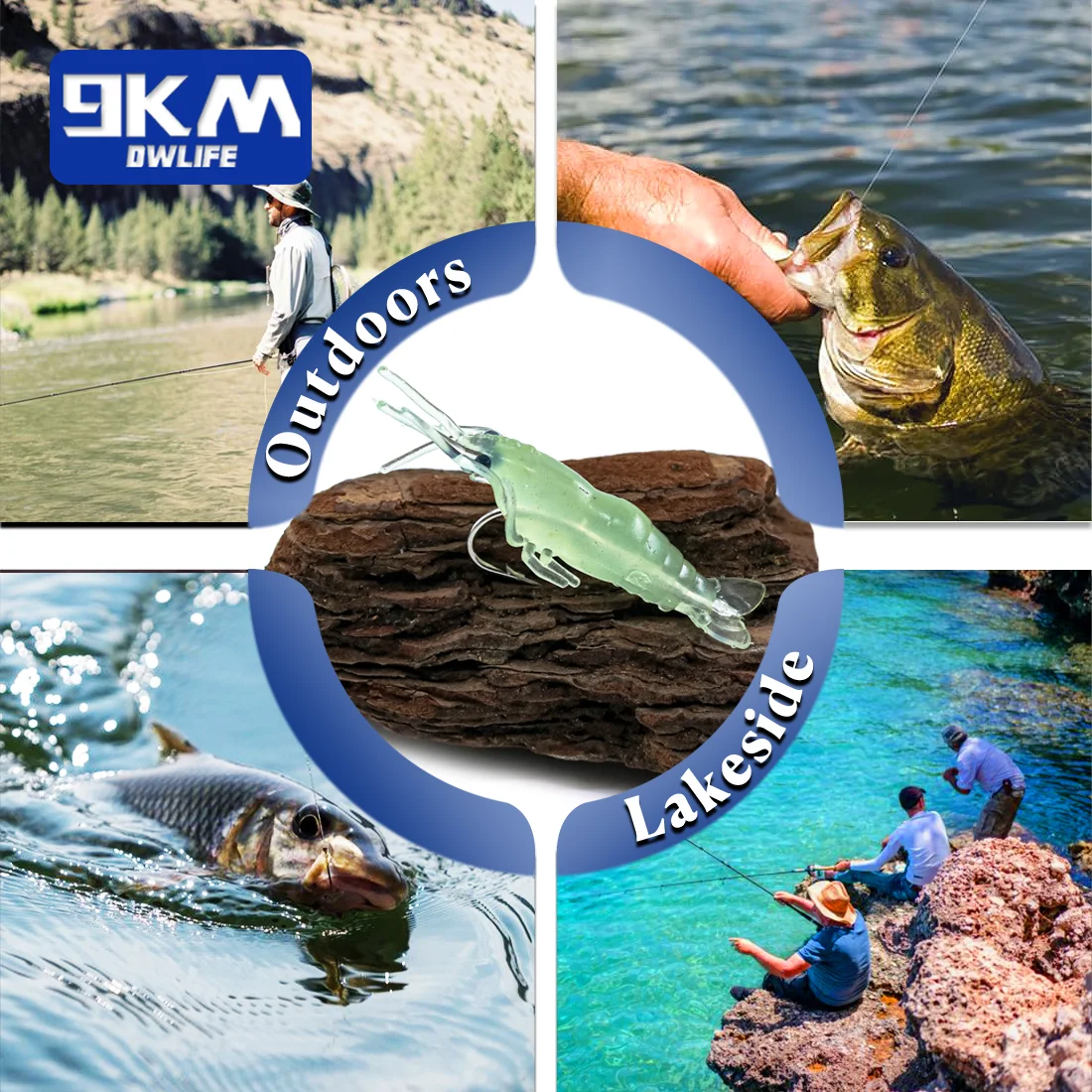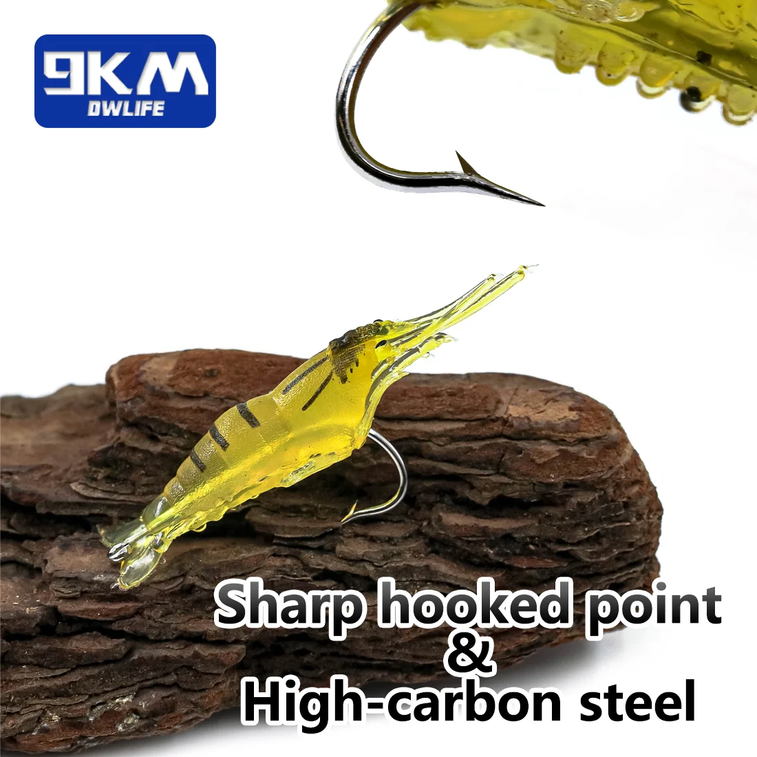 Los señuelos para camarones están hechos de material plástico de alta calidad. Esto hace que el señuelo sea suave y duradero, acciones de natación realistas, con un anzuelo afilado y fácil de capturar peces.