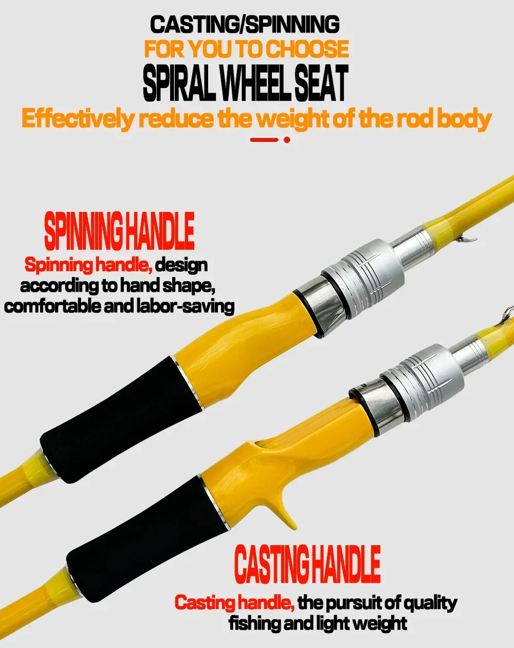 PARÁMETROLongitud del modelo: 1,65 M/1,80 MLongitud cerrada: 87 cm/94 cmSecciones: 2Material: fibra de carbonoPeso del cebo: 3g-20gMango: Lanzamiento (con gancho) / Spinning (sin gancho)CaracterísticasPunta de varilla gruesaLa tonalidad es sensible, atrapa peces rápidamente, no es fácil de romper.