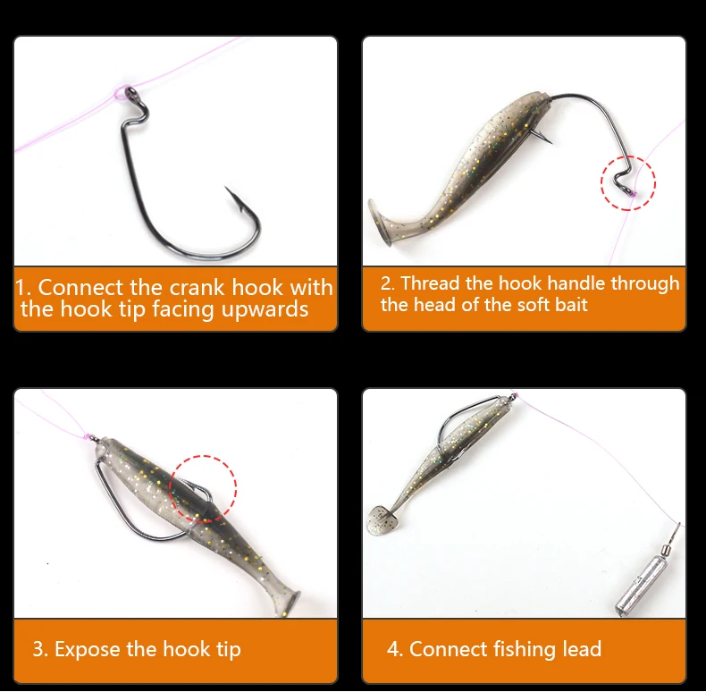 1.Saque el anzuelo de manivela de la cabeza del cebo blando.