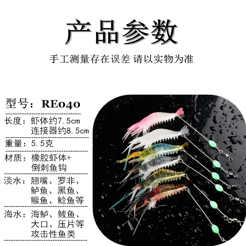Señuelo de cebo suave biónico colgante, cebo de pesca luminoso de camarón suave, equipo de pesca de agua dulce, juego de Señuelos de Pesca