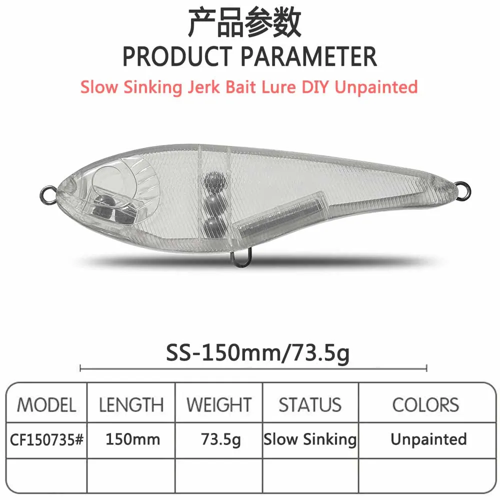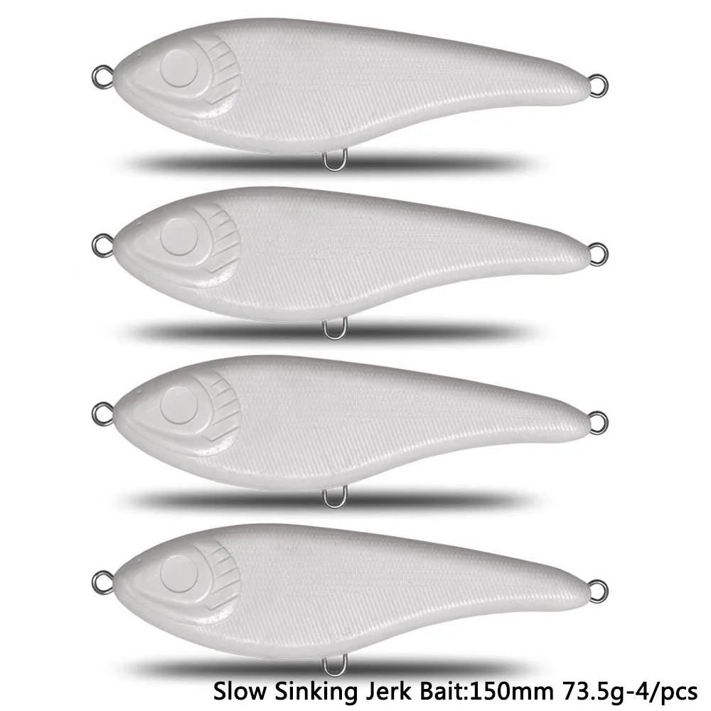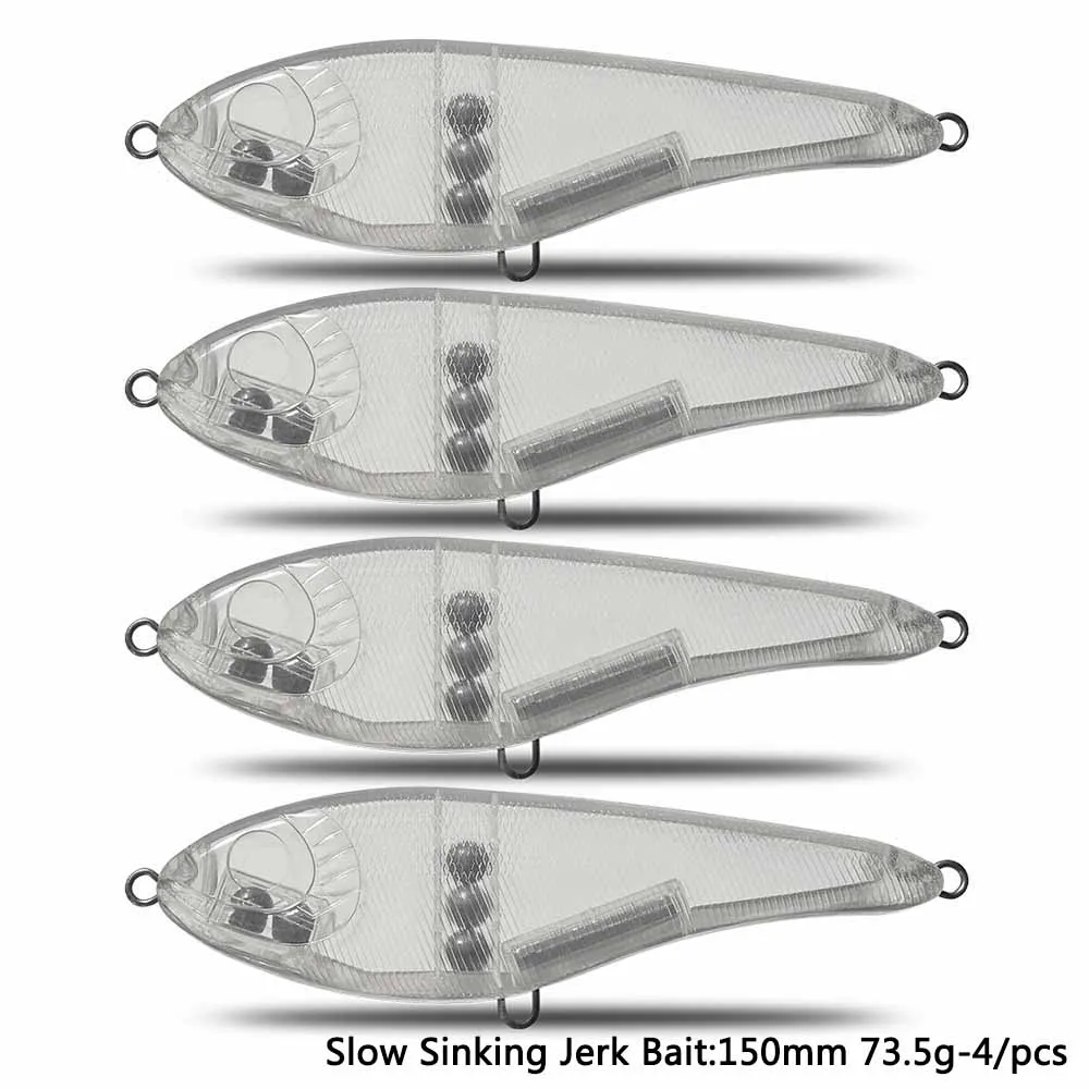 Señuelo CF Jerk Bait 150mm 73,5g 4/Uds plástico transparente ABS señuelo de pescado sin pintar Pike bass cebo duro de hundimiento lento