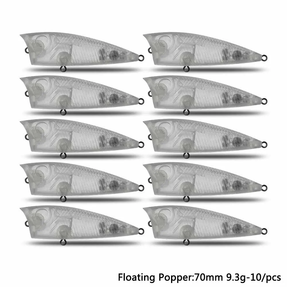 Señuelo CF sin pintar DIY flotante Popper 70mm 9,3g 10 Uds señuelo de pesca ABS plástico cebo Billet