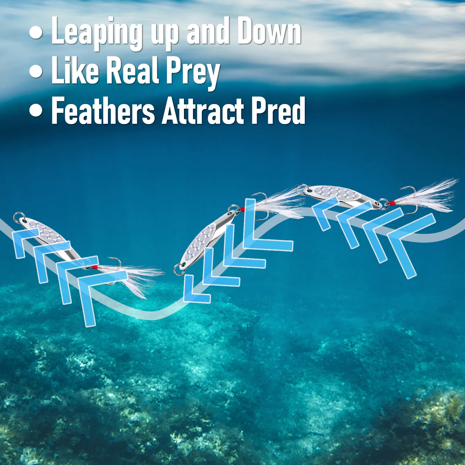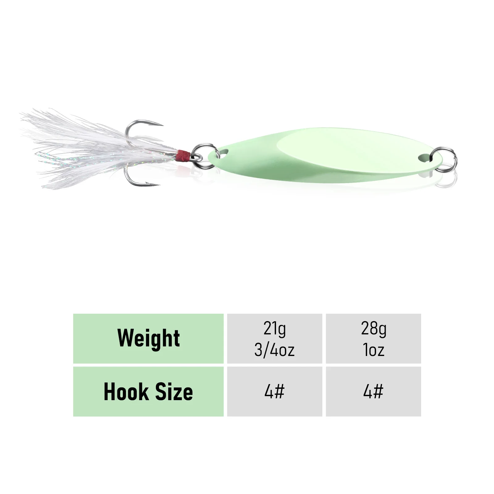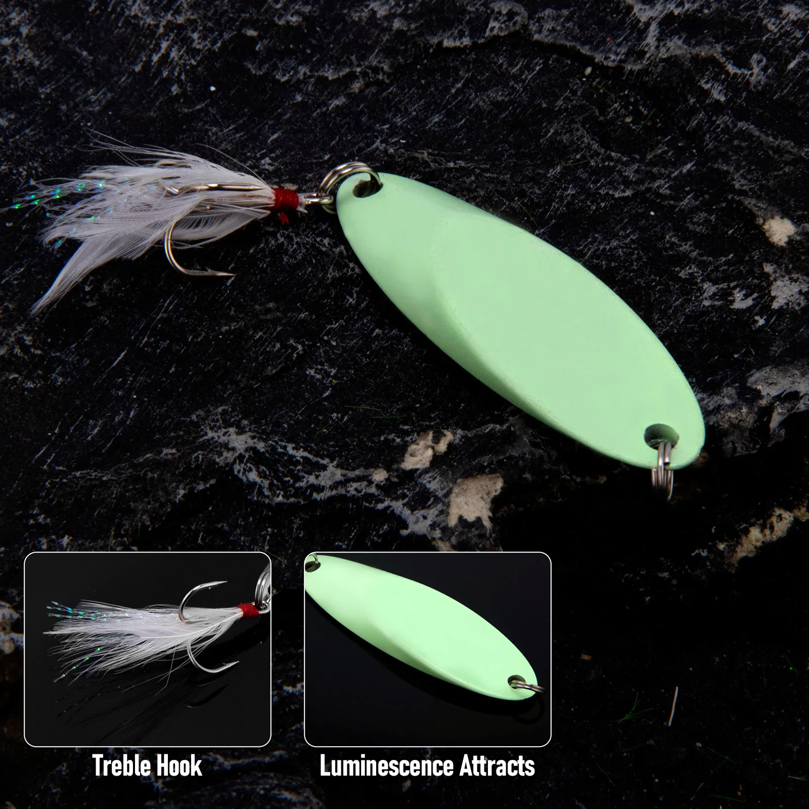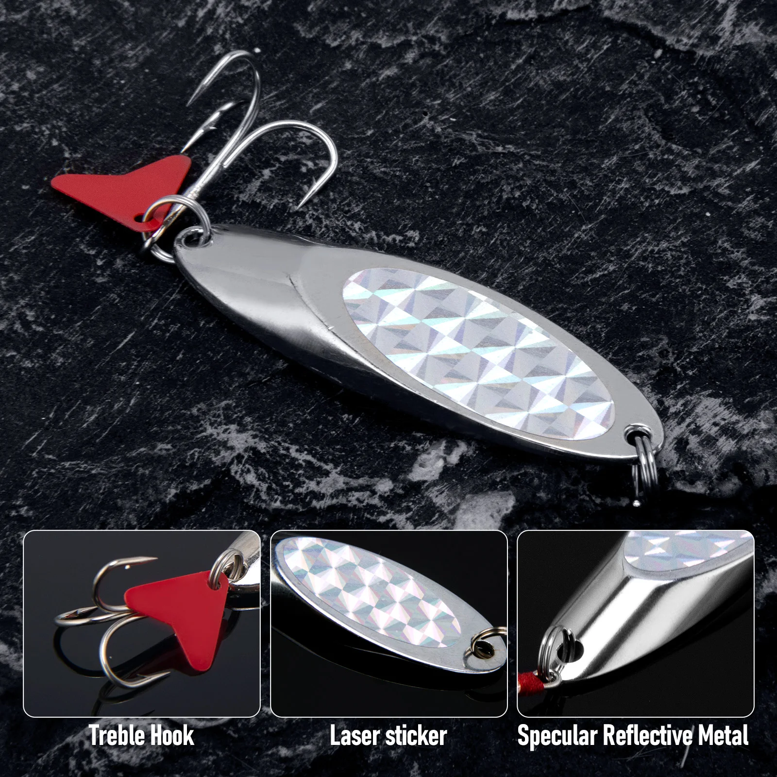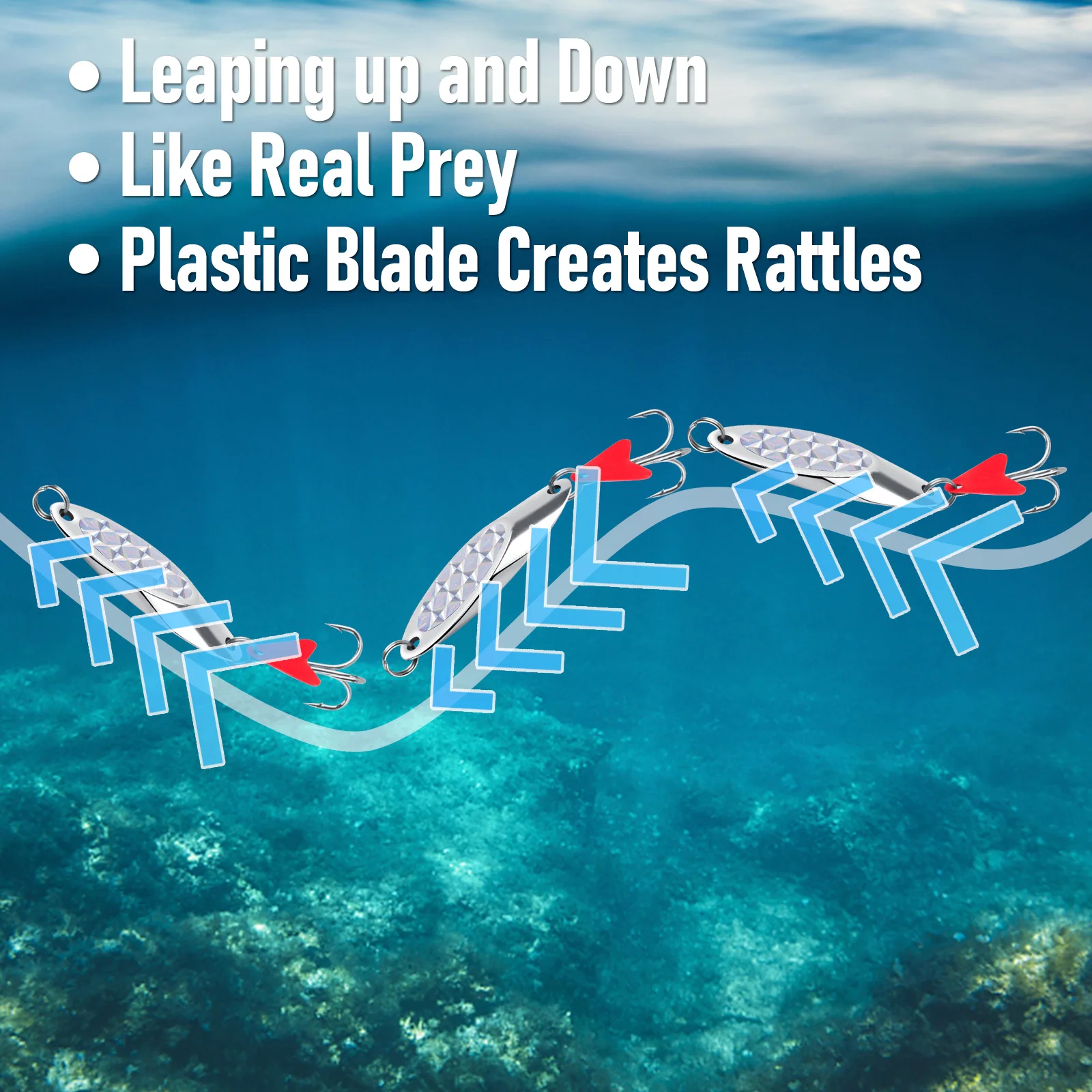 Metal sólido fabricado de una sola pieza con un anzuelo triple ultra afilado, aprovecha al máximo cada golpe.