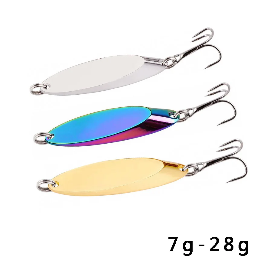 Señuelo de cuchara de Metal afilado, anzuelo triple, cebo duro Artificial para Pesca, trucha, lubina, cuchara de agua salada, equipo de aparejos de Pesca, 1 unidad