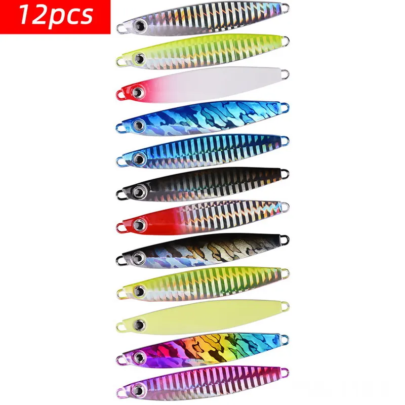Señuelo de cuchara de Metal que se hunde, plantilla de fundición, Jigging lento, plantilla de Metal, aparejos de pesca de agua salada, 60g, 80g, 12 unidades