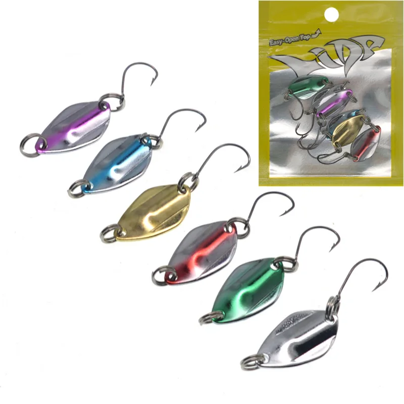 Señuelo de cuchara pequeña de pesca, cebo duro de 3g, cucharas de un solo gancho de doble Color, señuelos artificiales, lote de 6 piezas en oferta