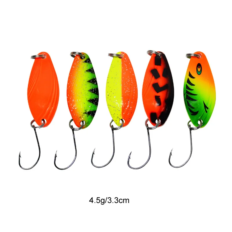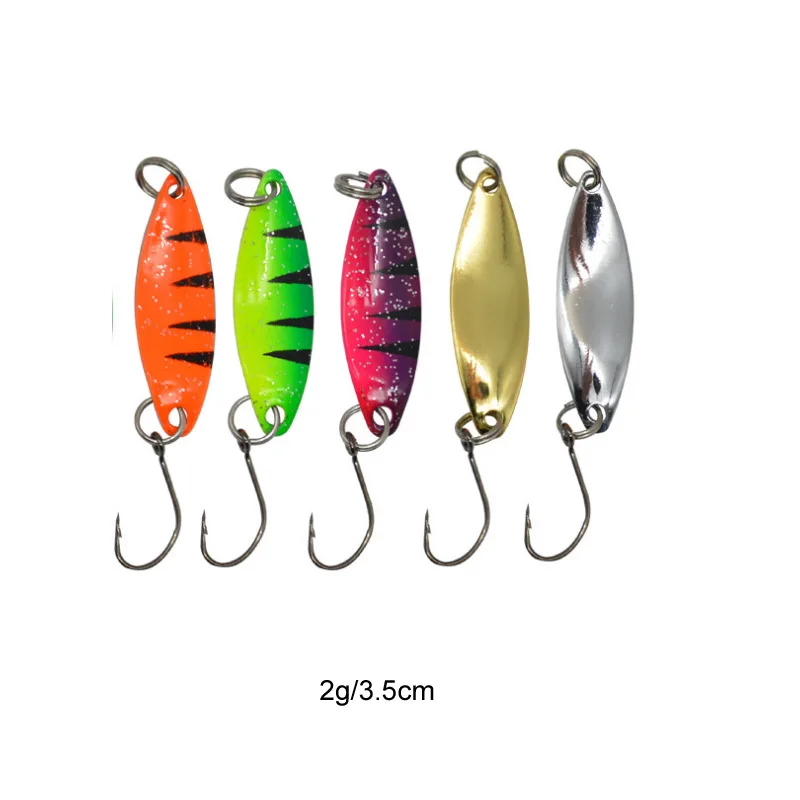 Señuelo de cuchara de pesca, 20 piezas, 2-4,5g, cucharas coloridas, anzuelos individuales, señuelos artificiales, plantilla de Metal, cebos duros