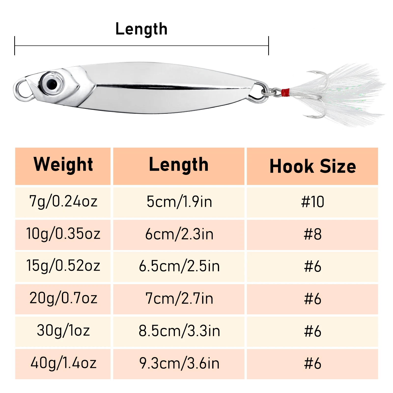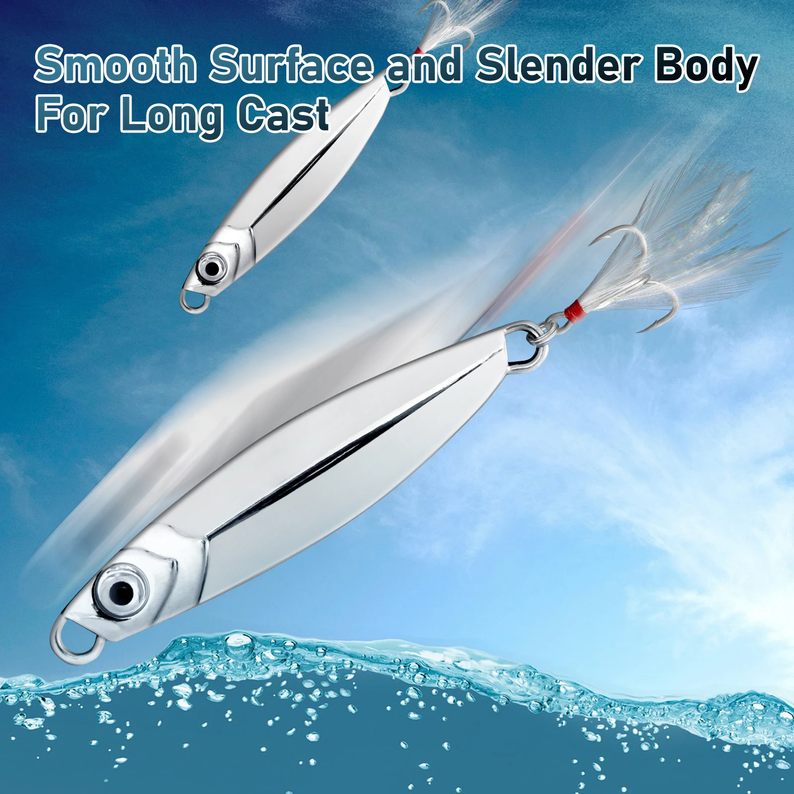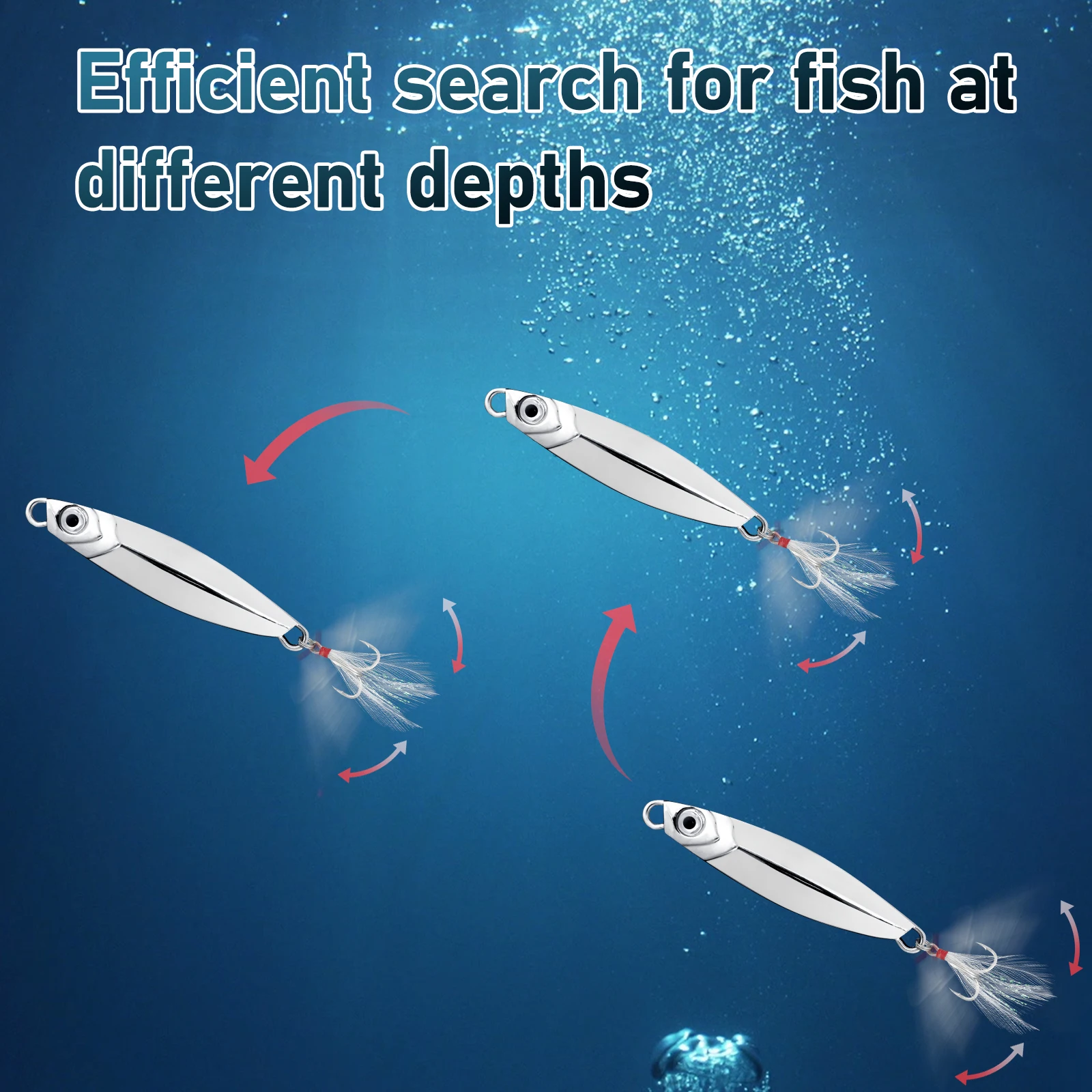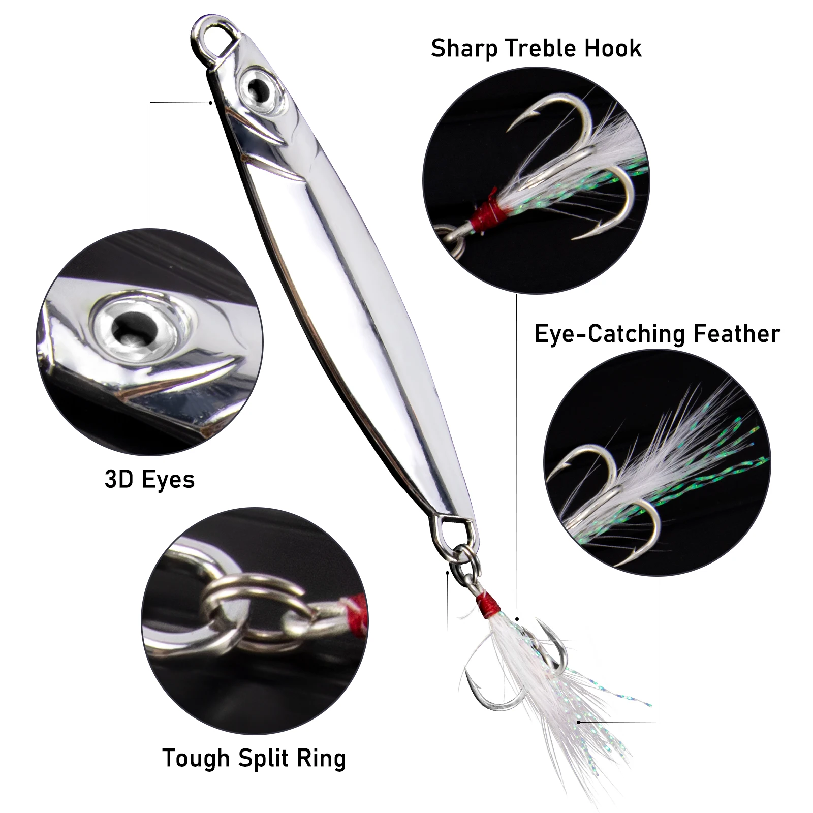 Resistente a la corrosión: el recubrimiento de aleación de zinc en el señuelo lo hace resistente a la corrosión y garantiza que se mantenga en buenas condiciones incluso después de un uso repetido en ambientes de agua salada.
