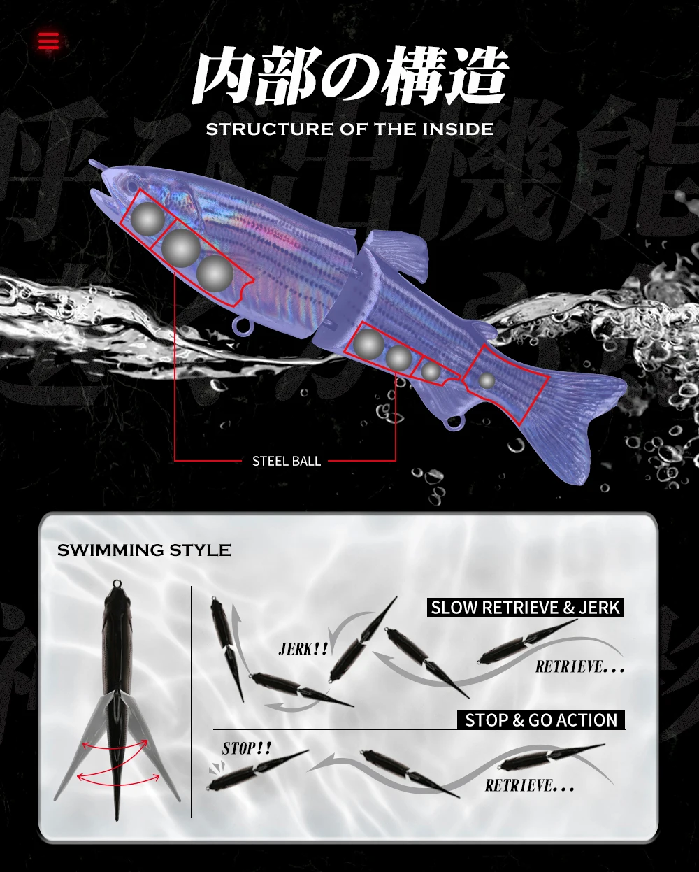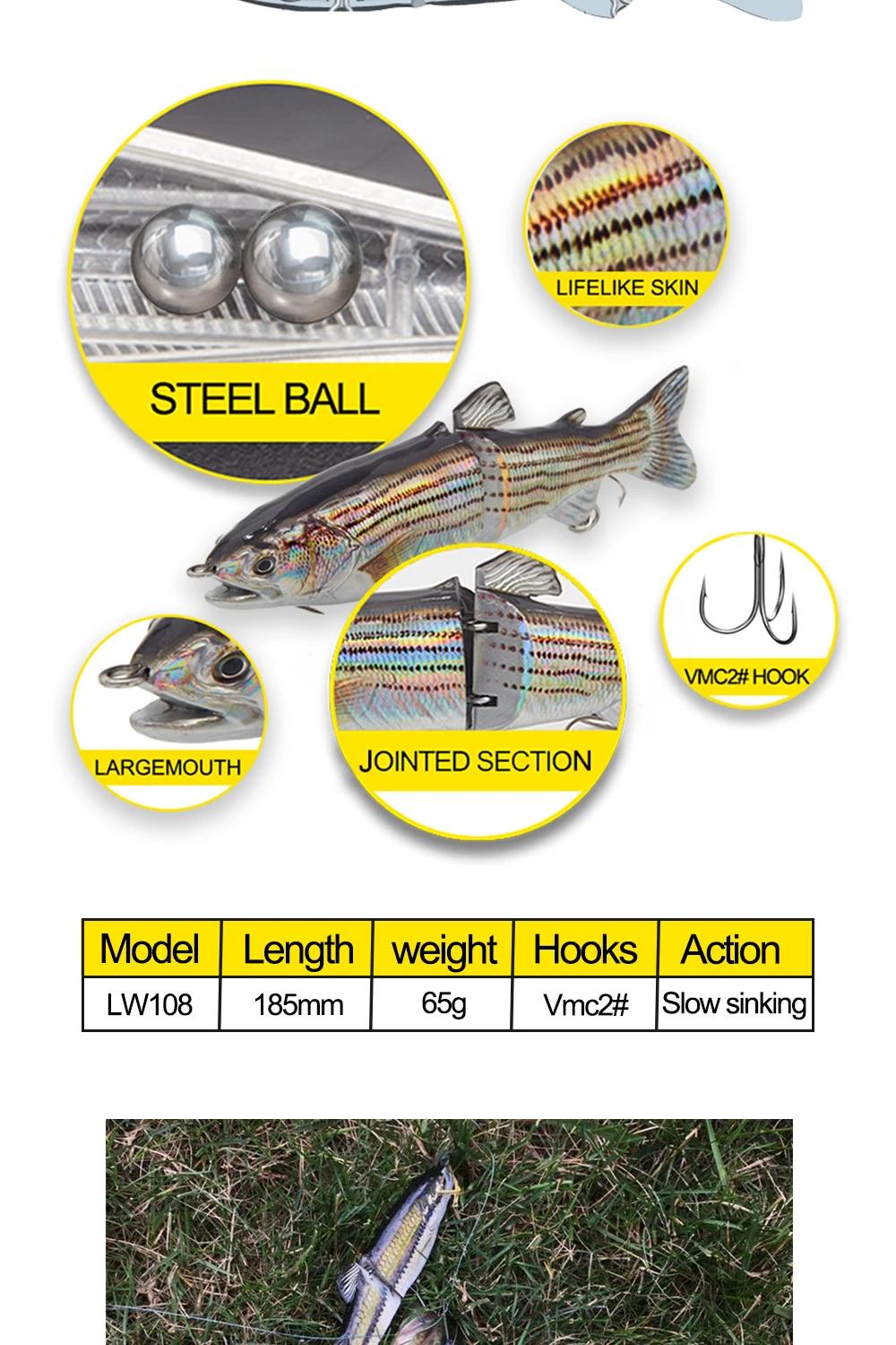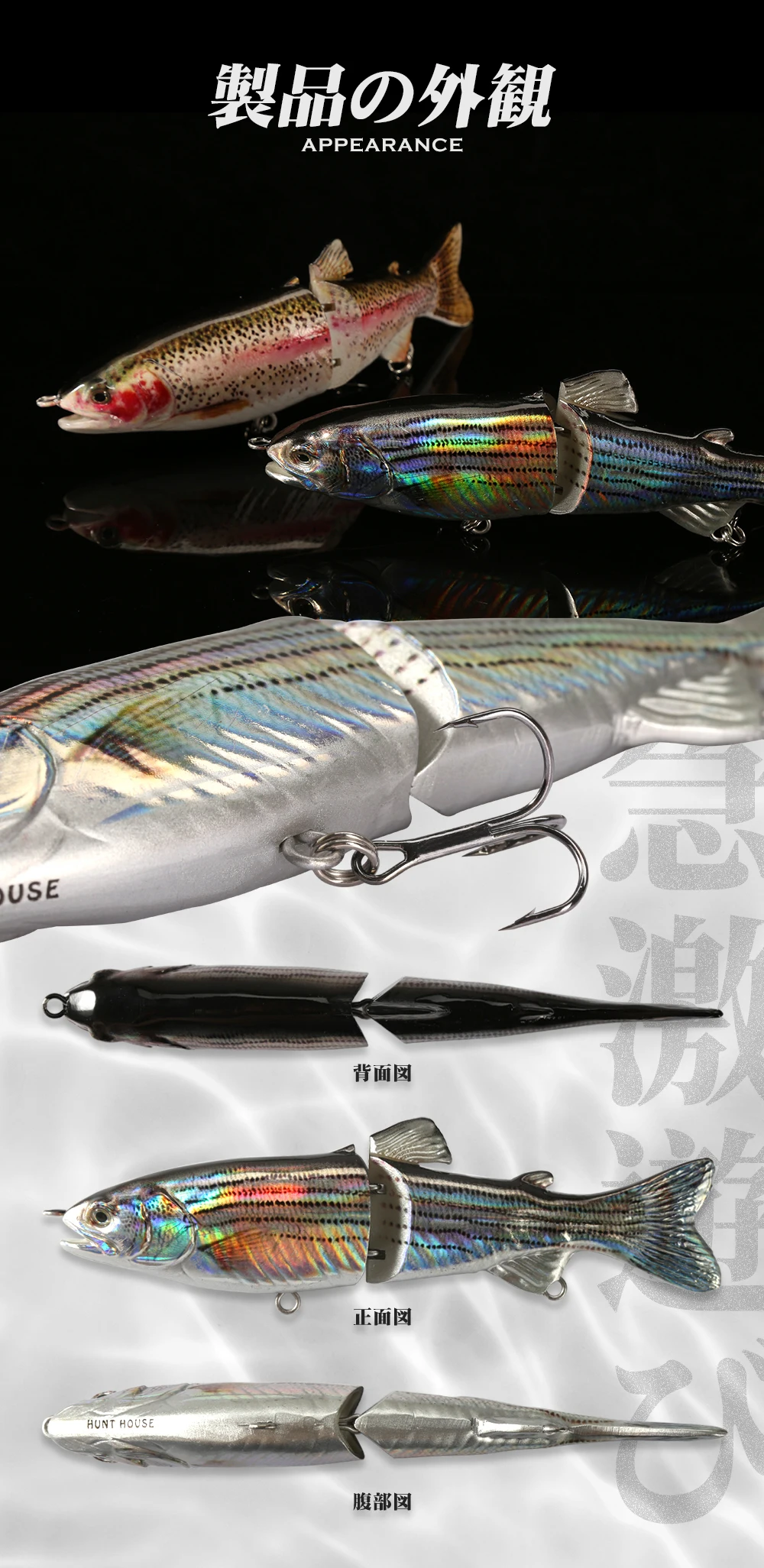 Señuelo duro de lubina hundida, wobblers multisección, Hunthouse, 185mm, 65g, articulado, cebo falso, accesorios de pesca lw108, 3 uds.