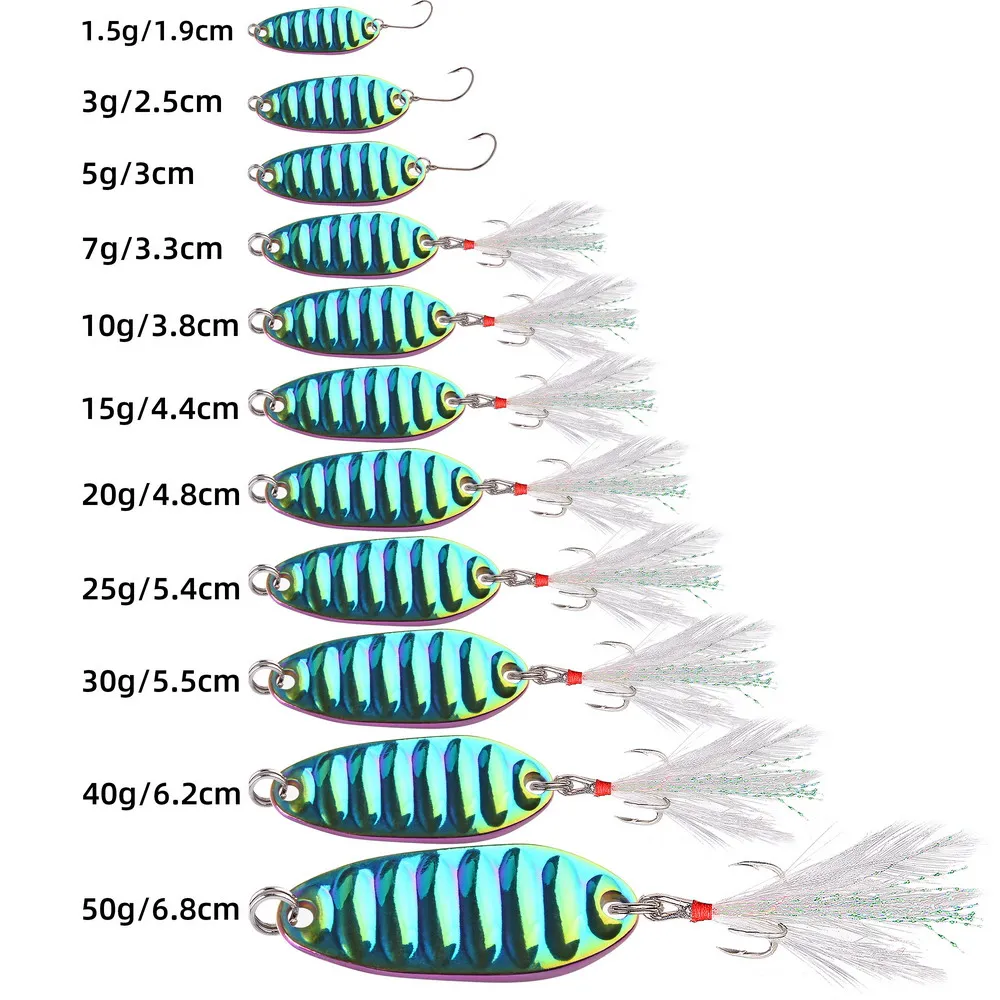 Querido amigo, la imagen de cada producto está en la descripción detallada a continuación (1,5G-50G). Longitud: como en la imagen Material:Metal Tipo: Señuelos para pesca, señuelo giratorio, cuchara para Lucio, fundición giratoria Lista del paquete: 10 señuelos Spinner *