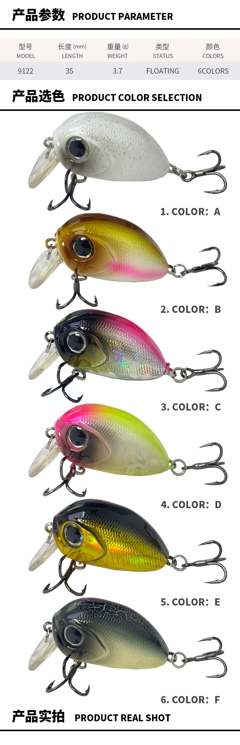 Señuelo duro para Pesca de carpa, cebo pequeño Crankbait, sonajeros ruidosos, Micro manivela, Lucio de agua dulce, 1 piezas, 35mm, 3,7g, Isca, 9122