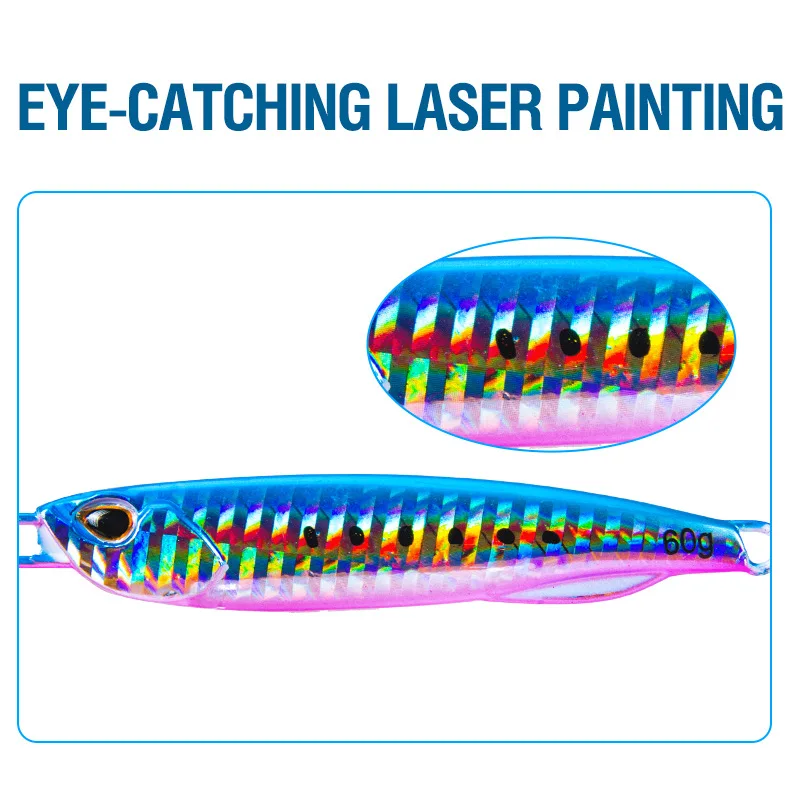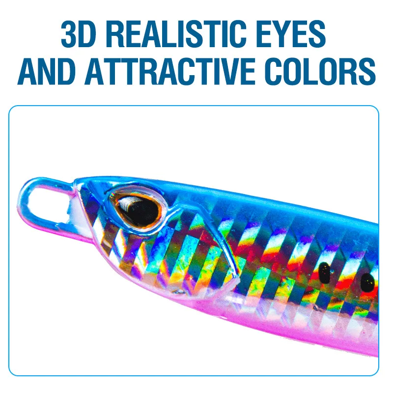 Señuelo duro de pesca de Metal con impresión 3D, cabeza de plantilla de lanzamiento lento, 6 colores, 10g20g30g40g60g con escala realista, ojos de pez 3D, agua salada