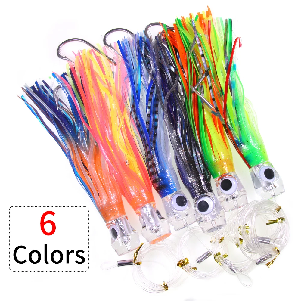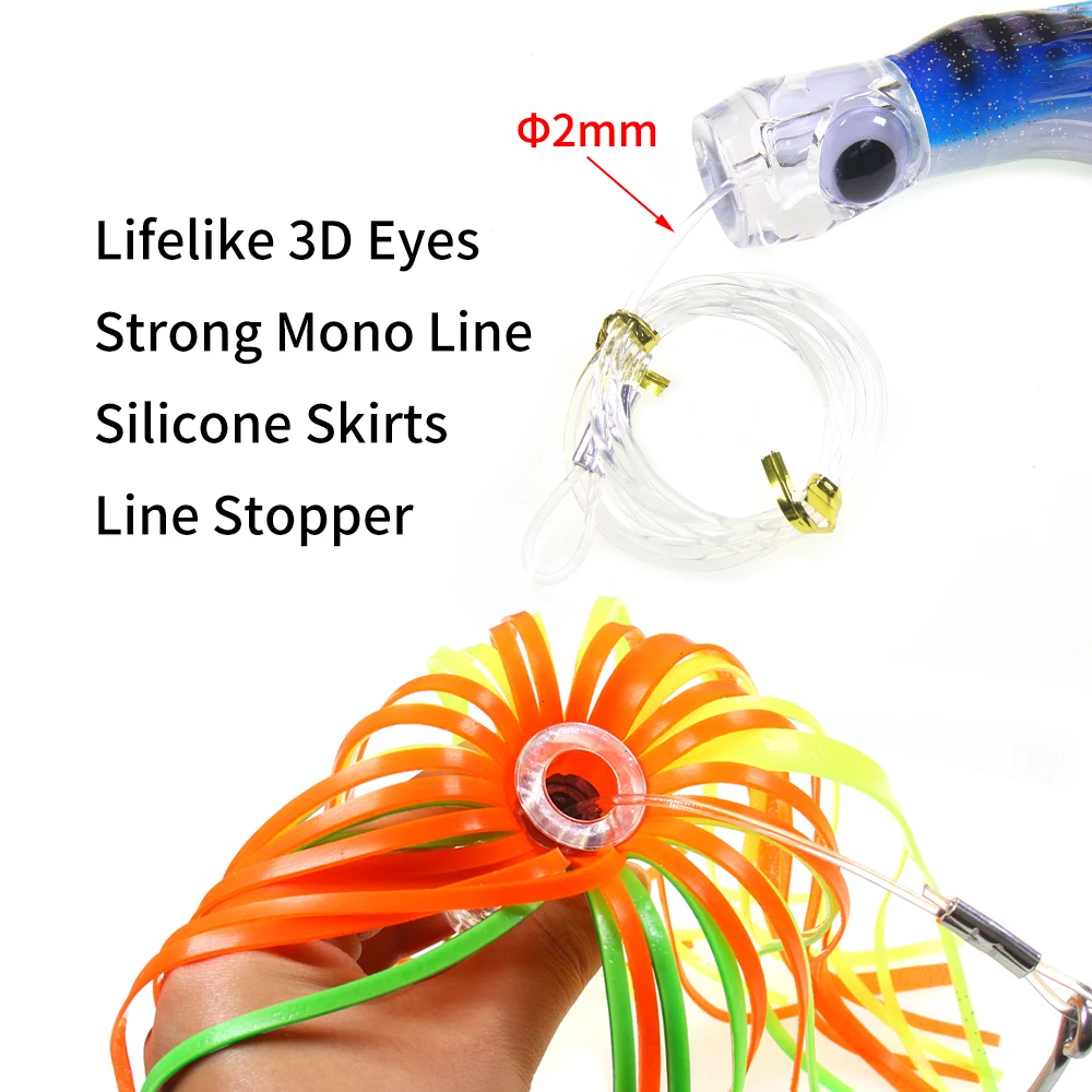 Señuelo de falda de pulpo grande de 22CM/100G con línea de anzuelo aparejado, barco de pesca de aguas profundas, cebo de curricán, pesca de atún Mahi Marlin Wahoo