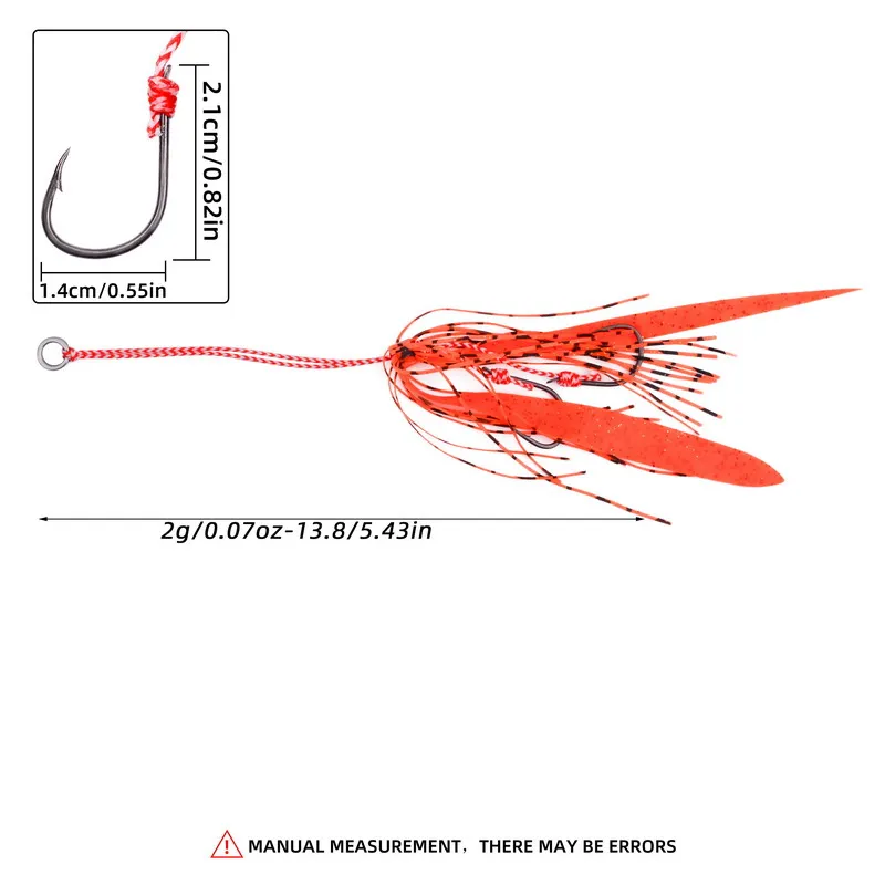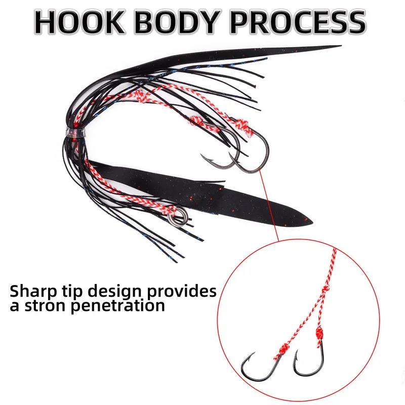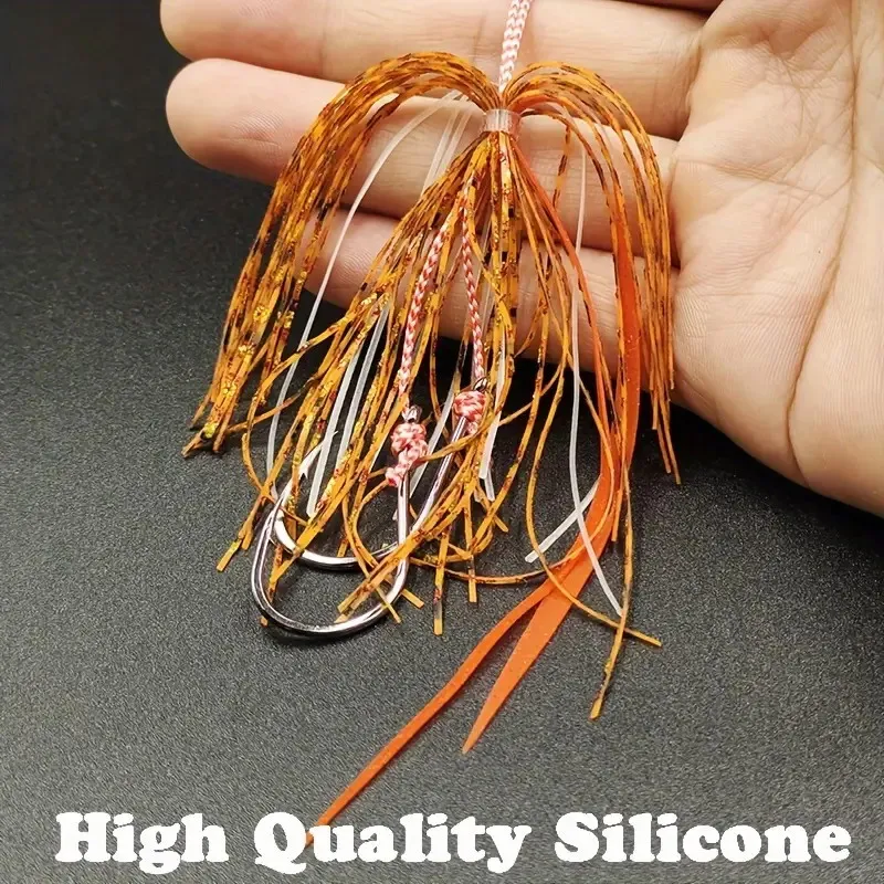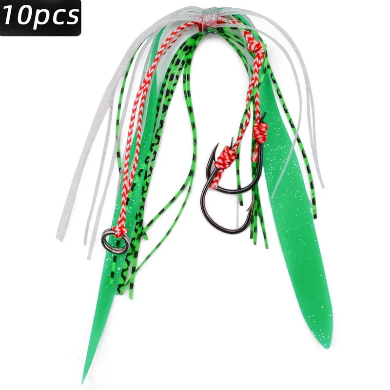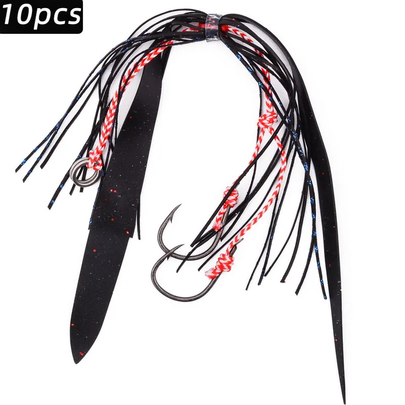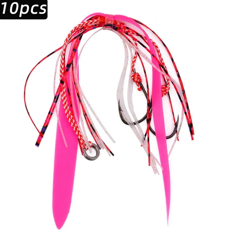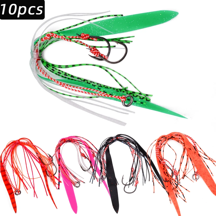 Señuelo de falda de sílice para pesca, cebo de pesca de mar con anzuelos dobles de acero rico en carbono, aparejos de pesca en barco, 10 Uds.