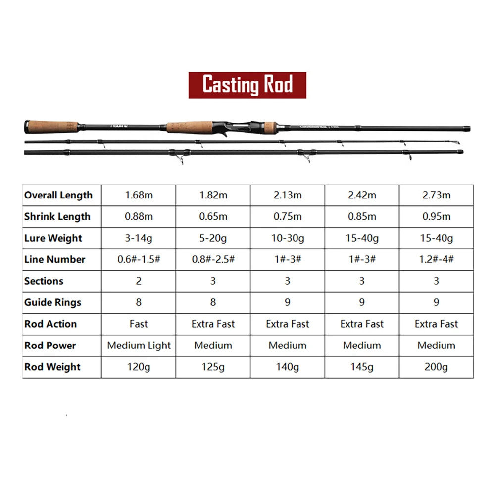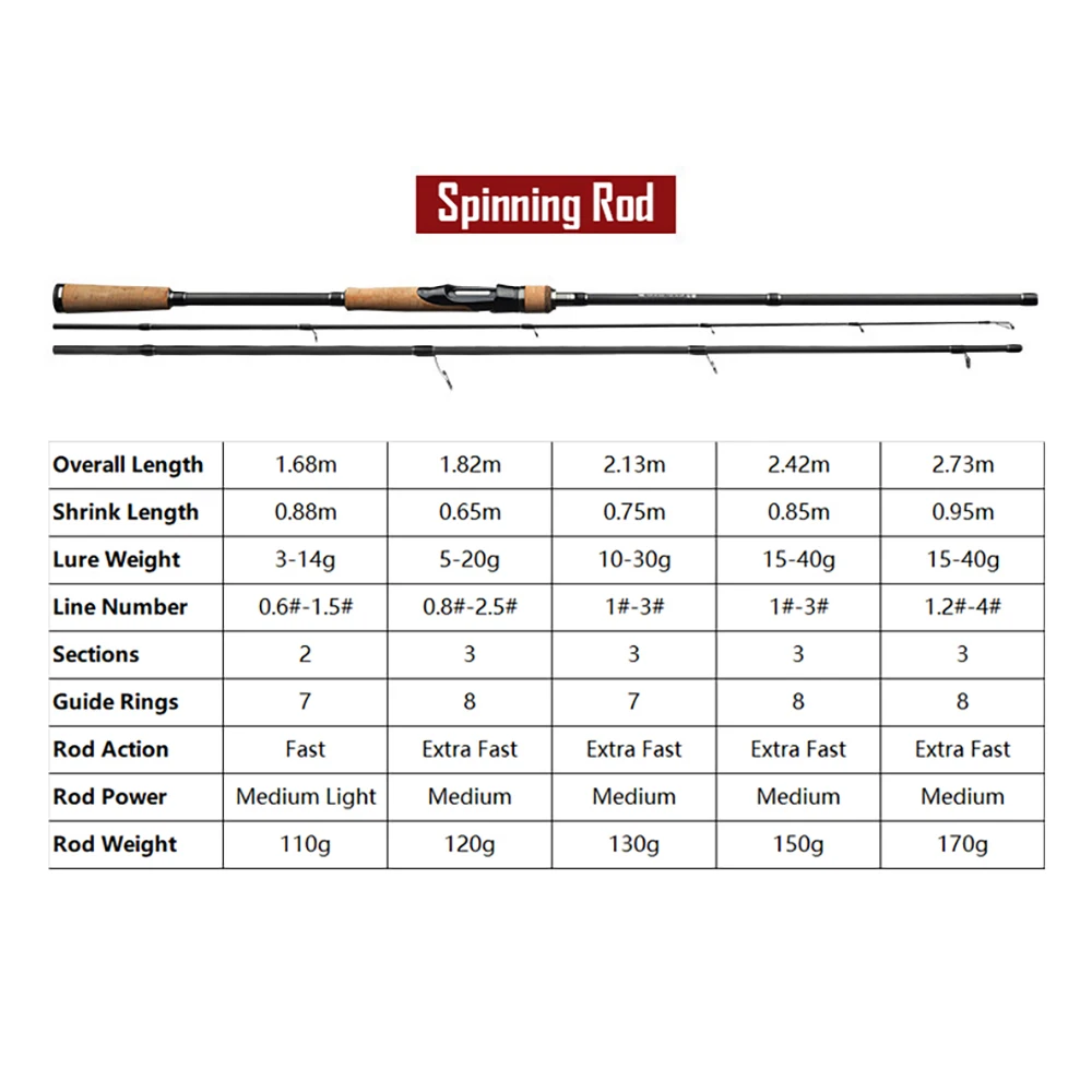 Longitud total de la caña de pescar: 1,68 M/1,82 M/2,13 M/2,42 m/2,73 M