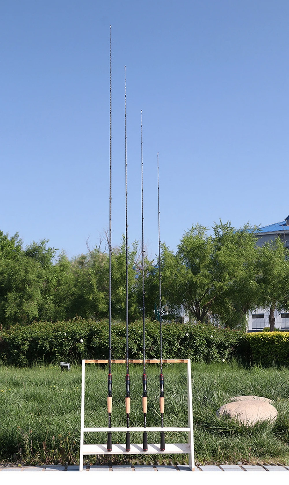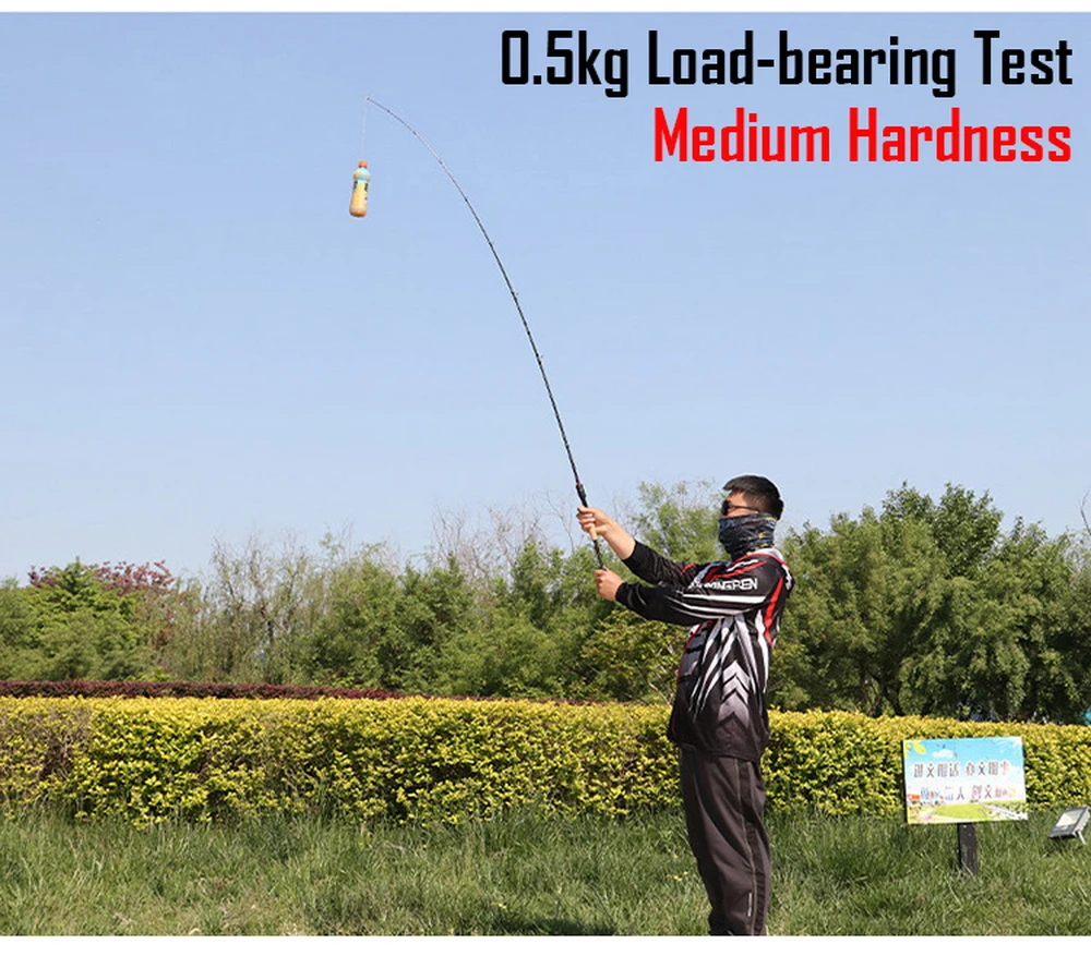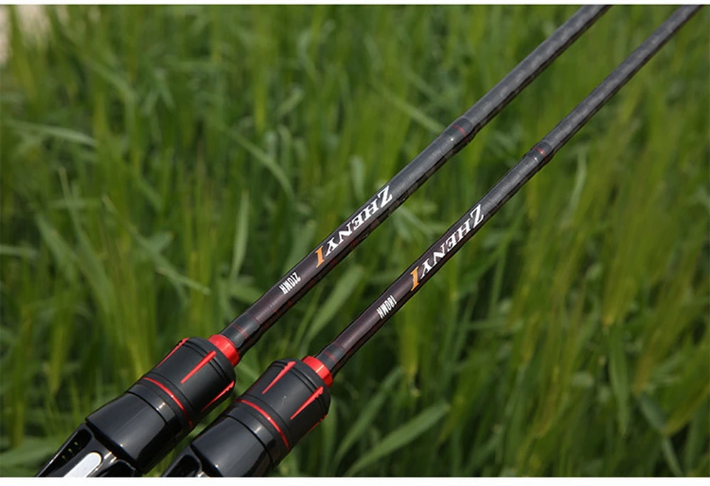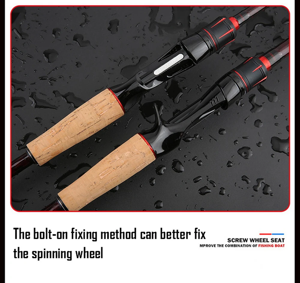 Material: fibra de carbono de alta densidad, el proceso de bobinado cruzado de tela de fibra de carbono de alta densidad hace que la varilla sea más fuerte y más antitorsión, Y la caña no es fácil de romper al pescar peces grandes