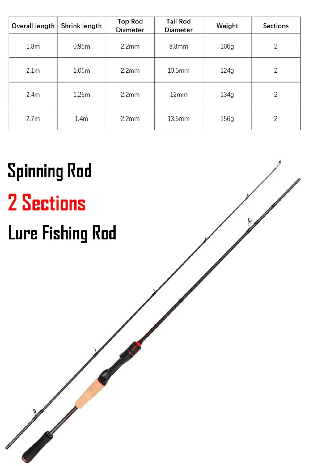 Longitud total de la caña de pescar: 1,8 m/2,1 m/2,4 m