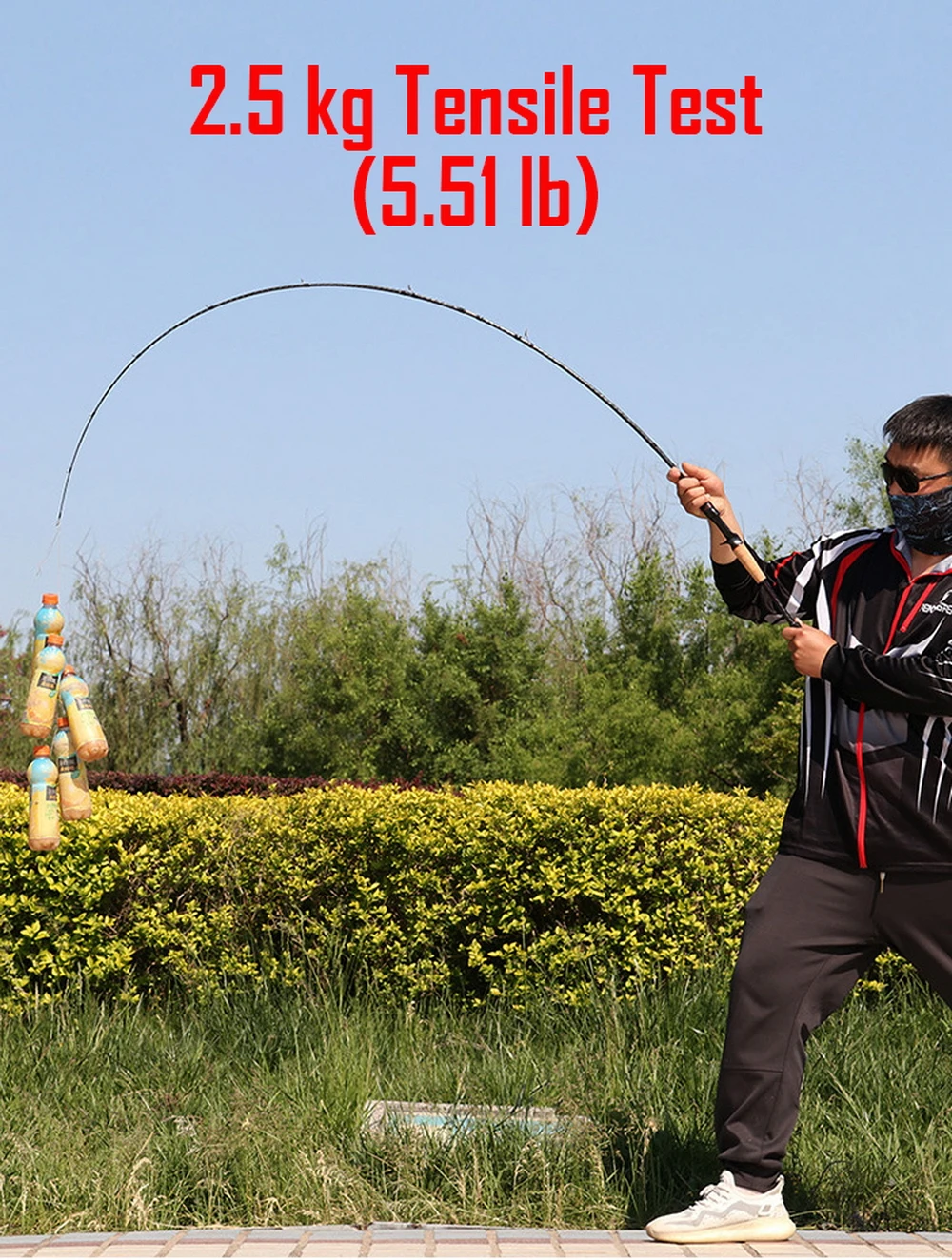 El proceso de bobinado cruzado de tela de fibra de carbono de alta densidad hace que la caña sea más fuerte y antitorsión, y no es fácil de romper al pescar peces grandes
