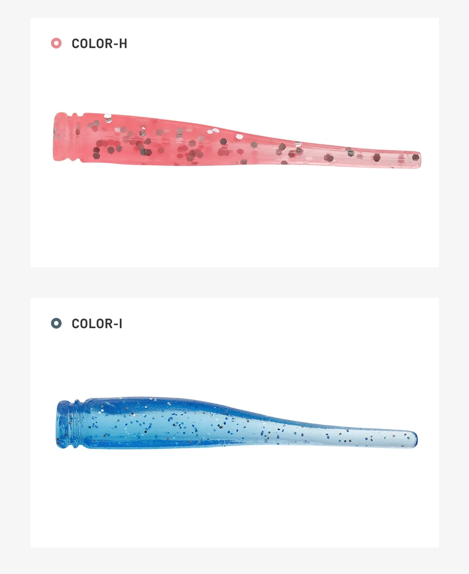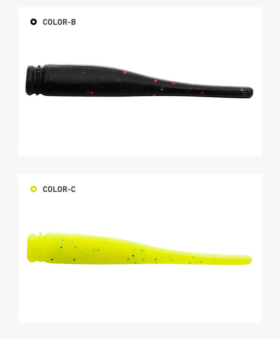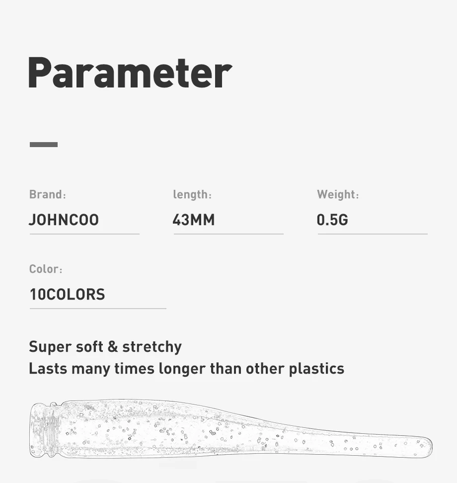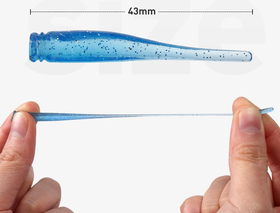 Diseño de cola delgada: el diseño de cola delgada agrega la acción de lanzamiento de un pececillo en apuros, parece cobrar vida en una corriente sutil, se burla de los bocados de crappies y otros peces Súper suaves y elásticos. Dura muchas veces más que otros plásticos