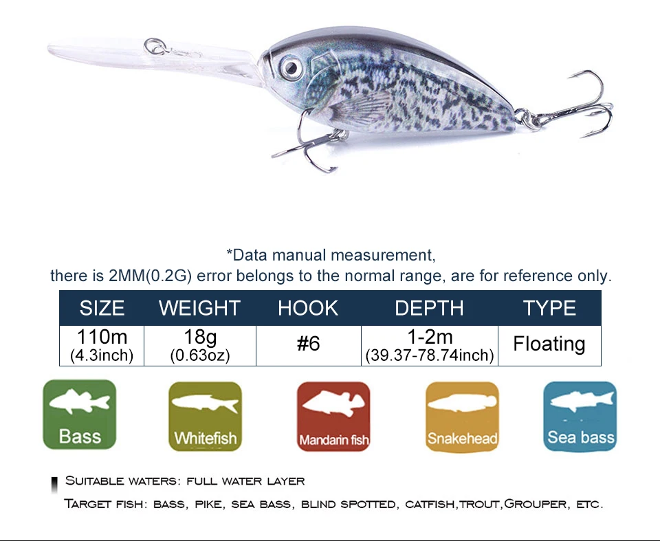 Crankbaits flotantes, Señuelos de Pesca Wobbler, perca, lubina, cebo artificial, señuelos de traqueteo, corriente del océano, 1cm, 11cm, 18g