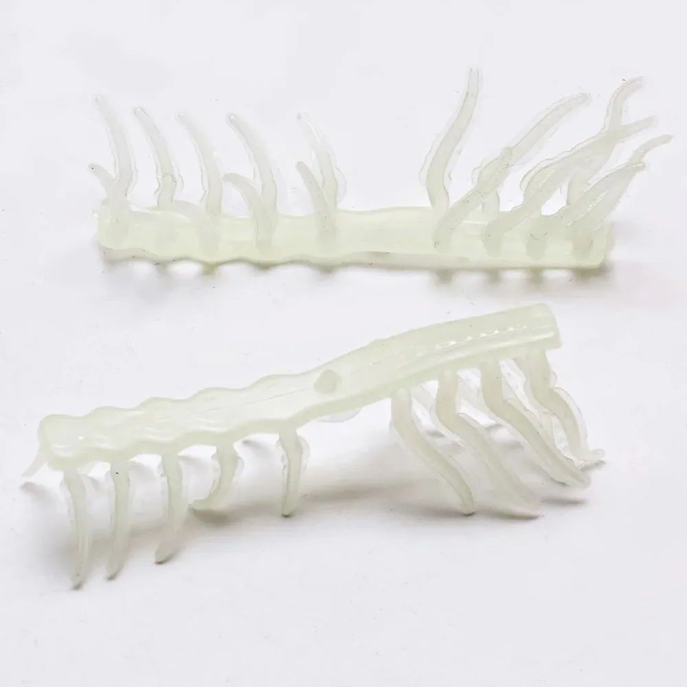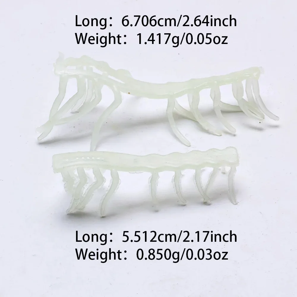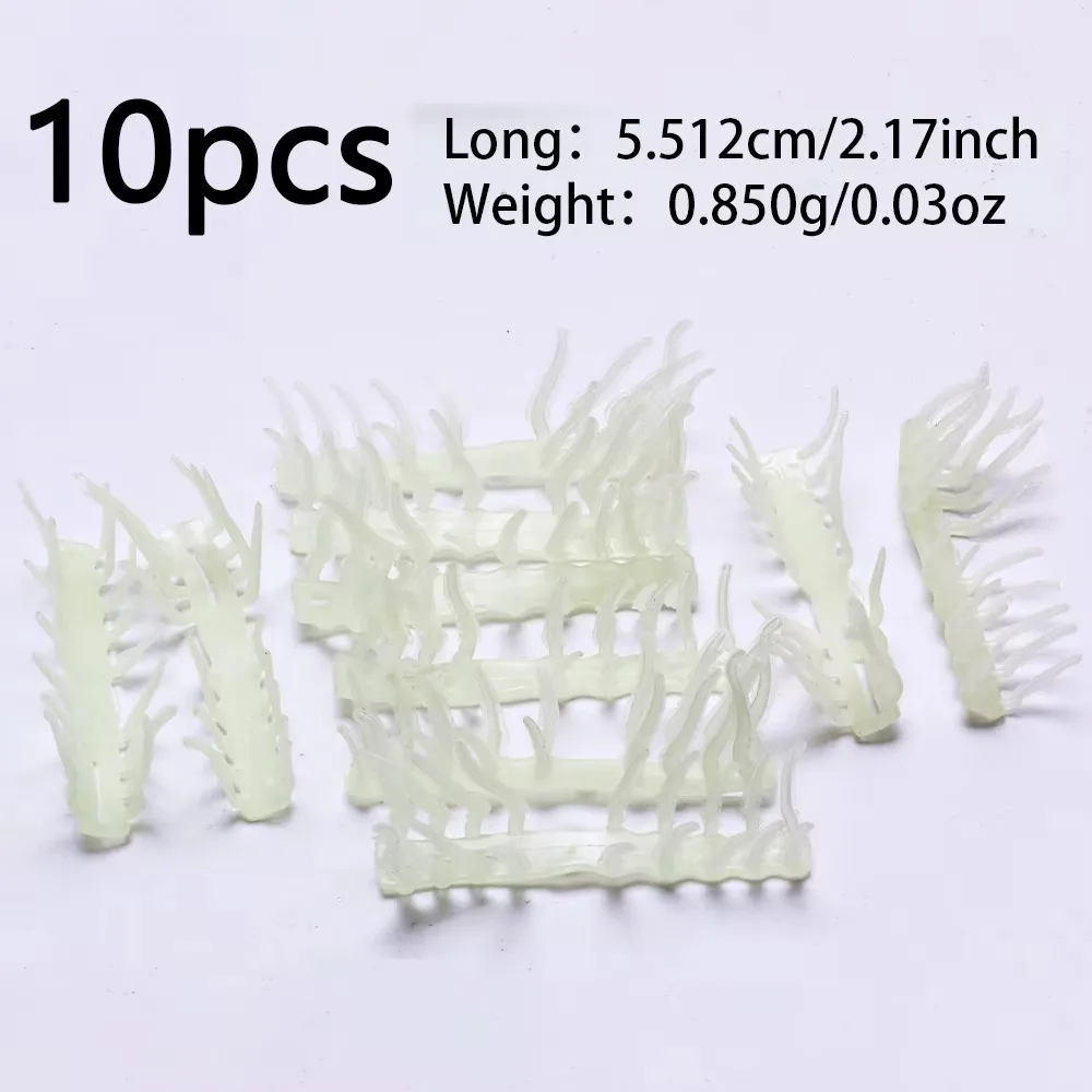 Origin: Mainland China Position: Salt water and fresh water are interchangeable Category: Soft rubber noctilucent luminous wood shrimp feet Material: soft rubber Optional Color: White with green glow in the dark Package size: 10*10*2cm/3.94*3.94*0.79inch Note:Due to the different monitor and light effect, the actual color of the item might be slightly different from the color showed on the pictures. Thank you!Please allow 1-2cm measuring deviation due to manual measurement. Features: 1.Product Design: This product adopts soft rubber design and has a good luminous effect. After absorbing light, the product can emit a good glow even in water and darkness, effectively attracting fish in the water. 2.Easy to install and versatile: This product can be attached to wooden shrimp to provide better night light effect. Its versatility allows you to use it in various fishing environments and target different types of aquatic organisms. 3.Due to the fact that the product is not an electrified product, it cannot emit light itself. It needs to be noctilucent with a flashlight or other light source for 15-20 seconds before the product absorbs the light and emits a shiny light when placed in water. This dark light will also make the fish more active, thereby increasing your chances of success. 4.This product has 2 different models that can be adapted to different sizes of wooden shrimp. Choosing the appropriate size of wooden shrimp feet can make the shrimp more firmly fixed. Package Included:10pcs Shrimp Fake Bait